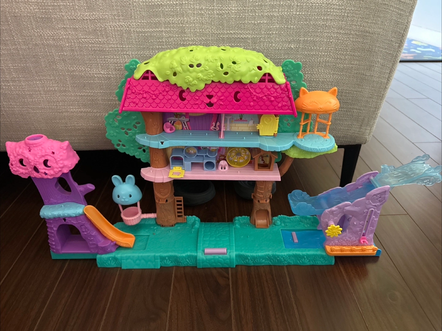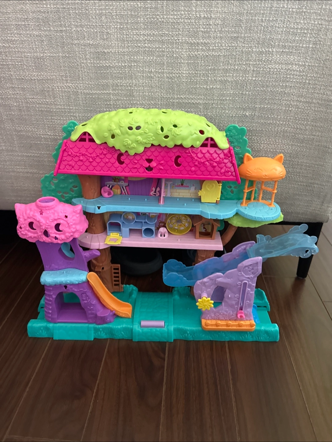 75Colourful playset with multiple levels. Features a treehouse design with a slide. Perfect for imaginative play and relaxation. missing Doll and Accessories.