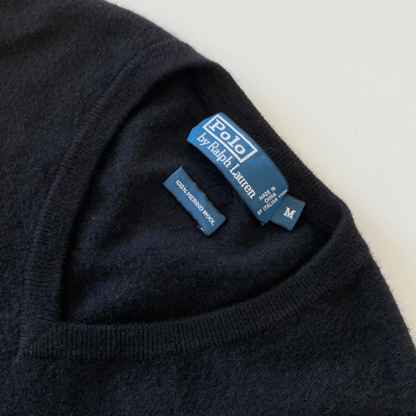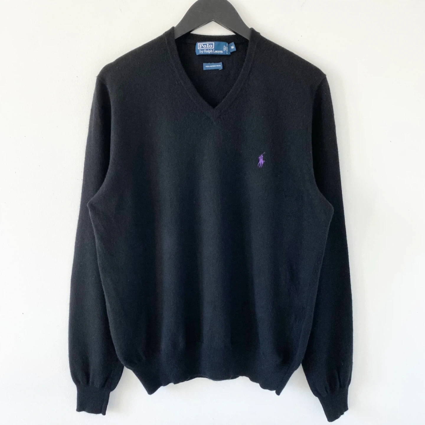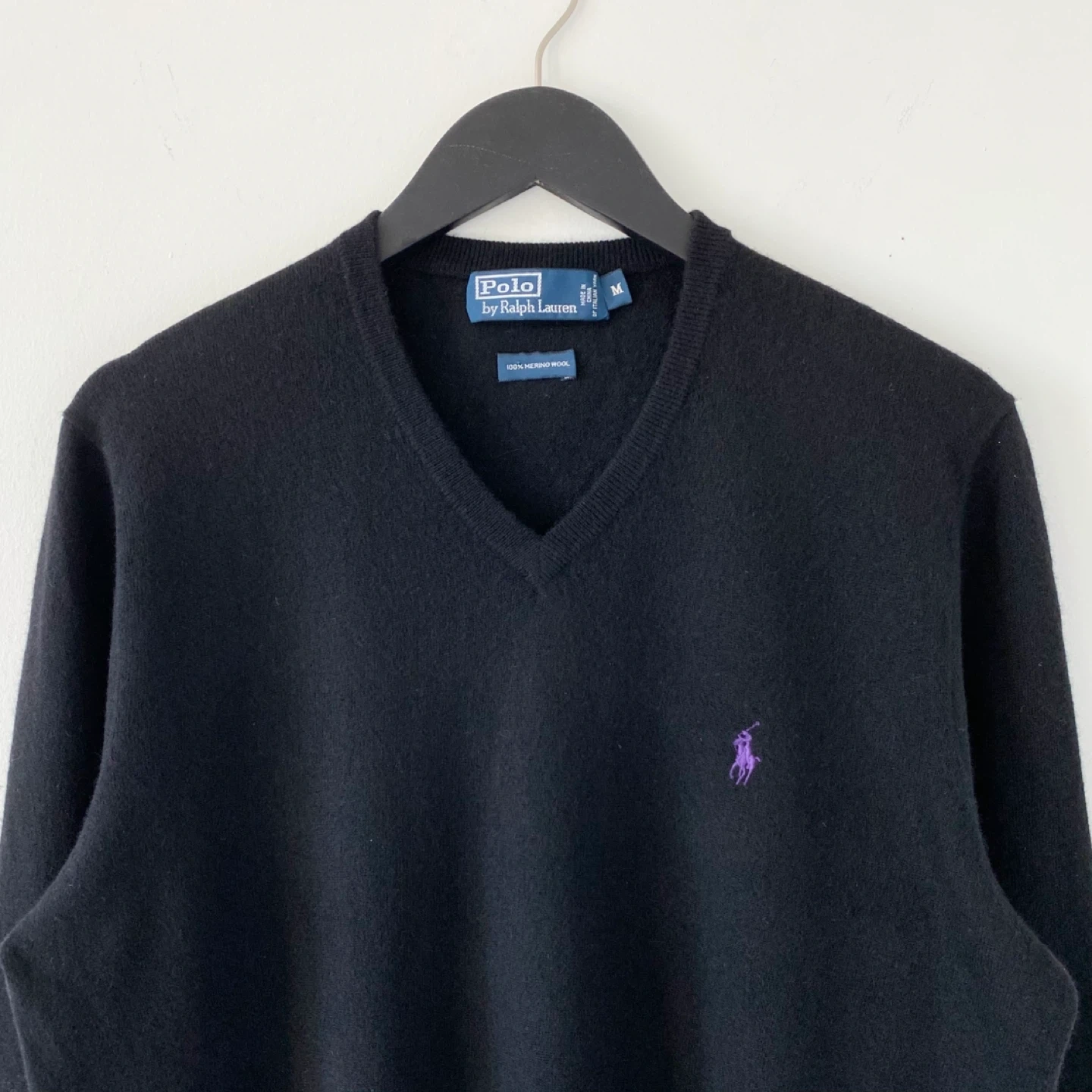 Pick up only in Leslieville (Queen and Pape) Check out other listings! Polo by Ralph Lauren v-neck sweater. Made of 100% merino wool in black with purple log. This classic style, colour and quality will stand the test of time and offer many ways to style. Love wrapping it around the neck or draping it over the shoulder. Minimal wear. There's no staining, snags or damage. It's clean and in excellent condition. Size M Approximate measurements laid flat Shoulder 16” Pit to pit 21.5” Shoulder to cuff 26.25” Center back length 26.5”