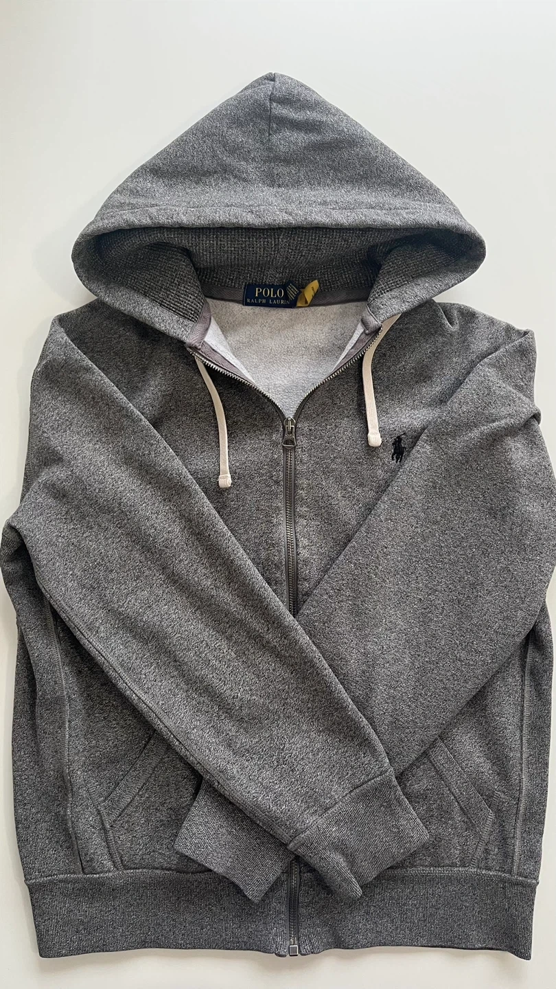 10Like-new Polo Ralph Lauren full-zip hoodie in heather grey. It’s lightly used, well-kept, and shows no visible signs of wear. Features a smooth front zipper and the classic embroidered Polo logo on the chest. Purchased from Toronto Premium Outlets and kept in great condition.