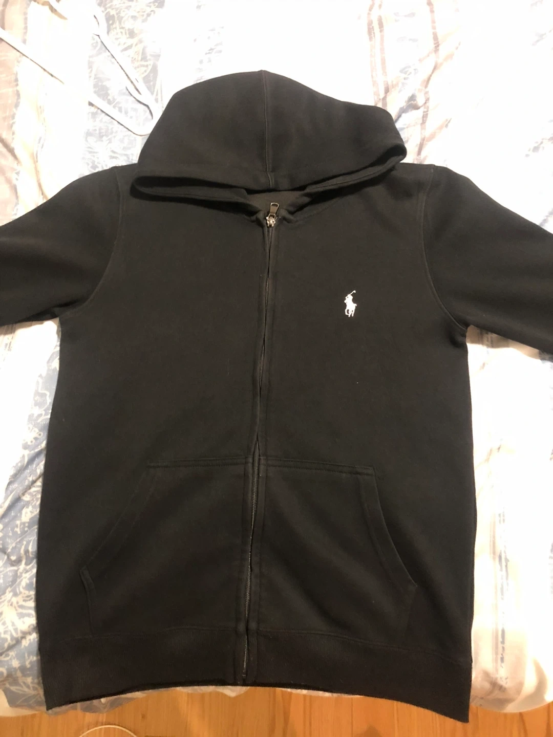 18Selling a Polo Ralph Lauren hoodie in black. It's a custom fit and size small. Perfect for layering or wearing on its own!