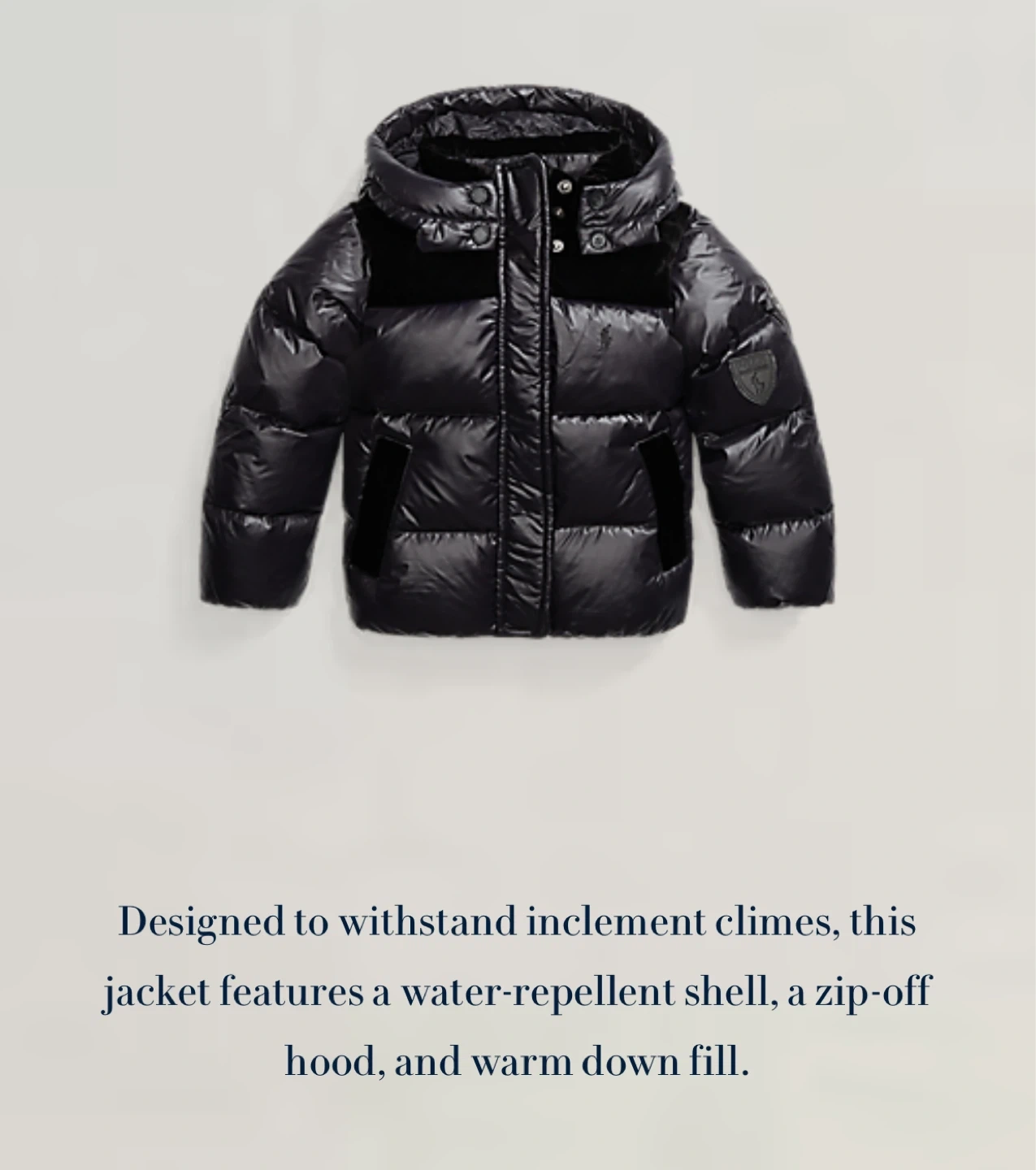 0Keep your little one warm with this Polo Ralph Lauren puffer jacket! It's a stylish black colour and a size 3/3T. Perfect for those cold Canadian days . BARELY WORN.