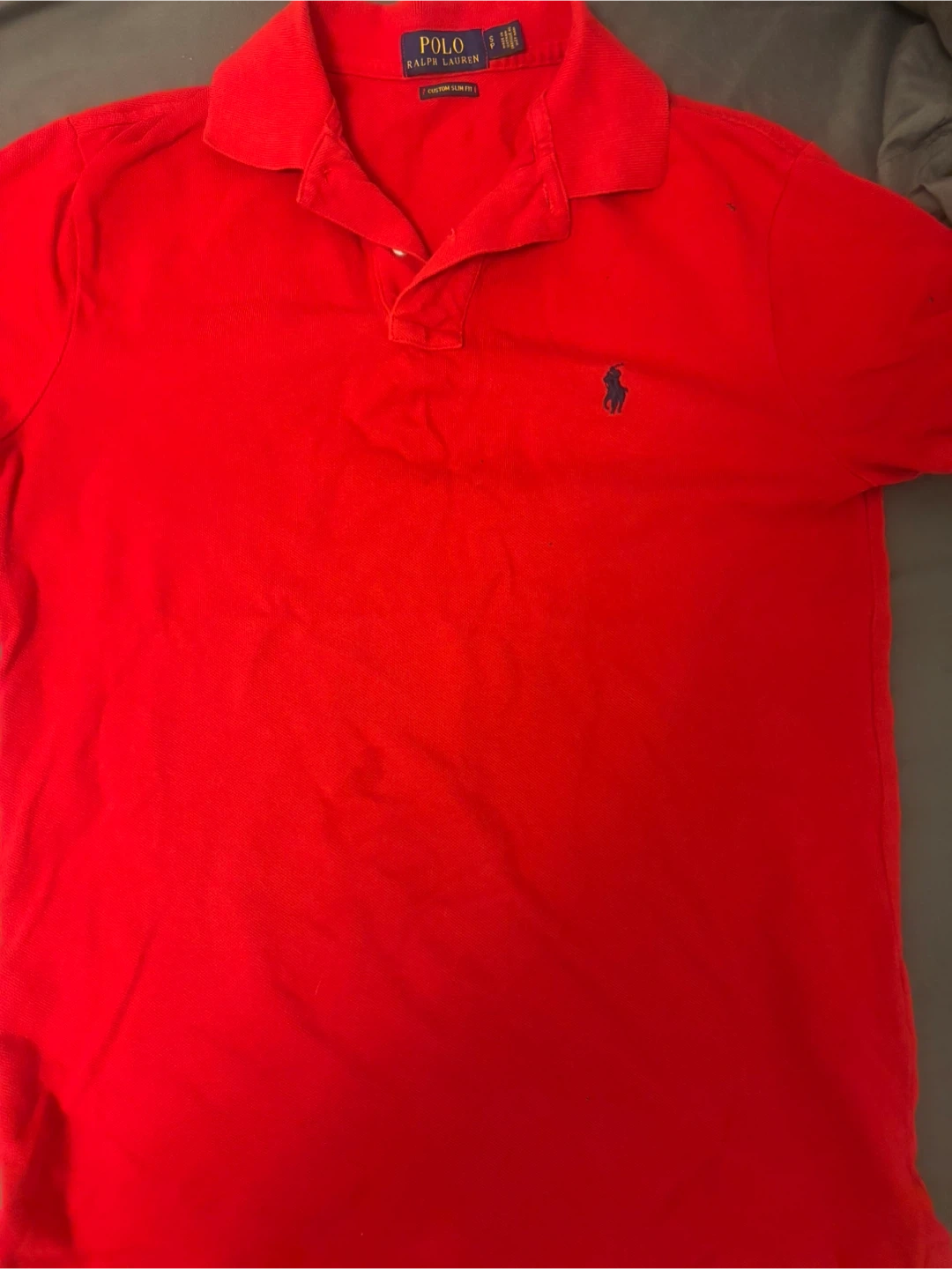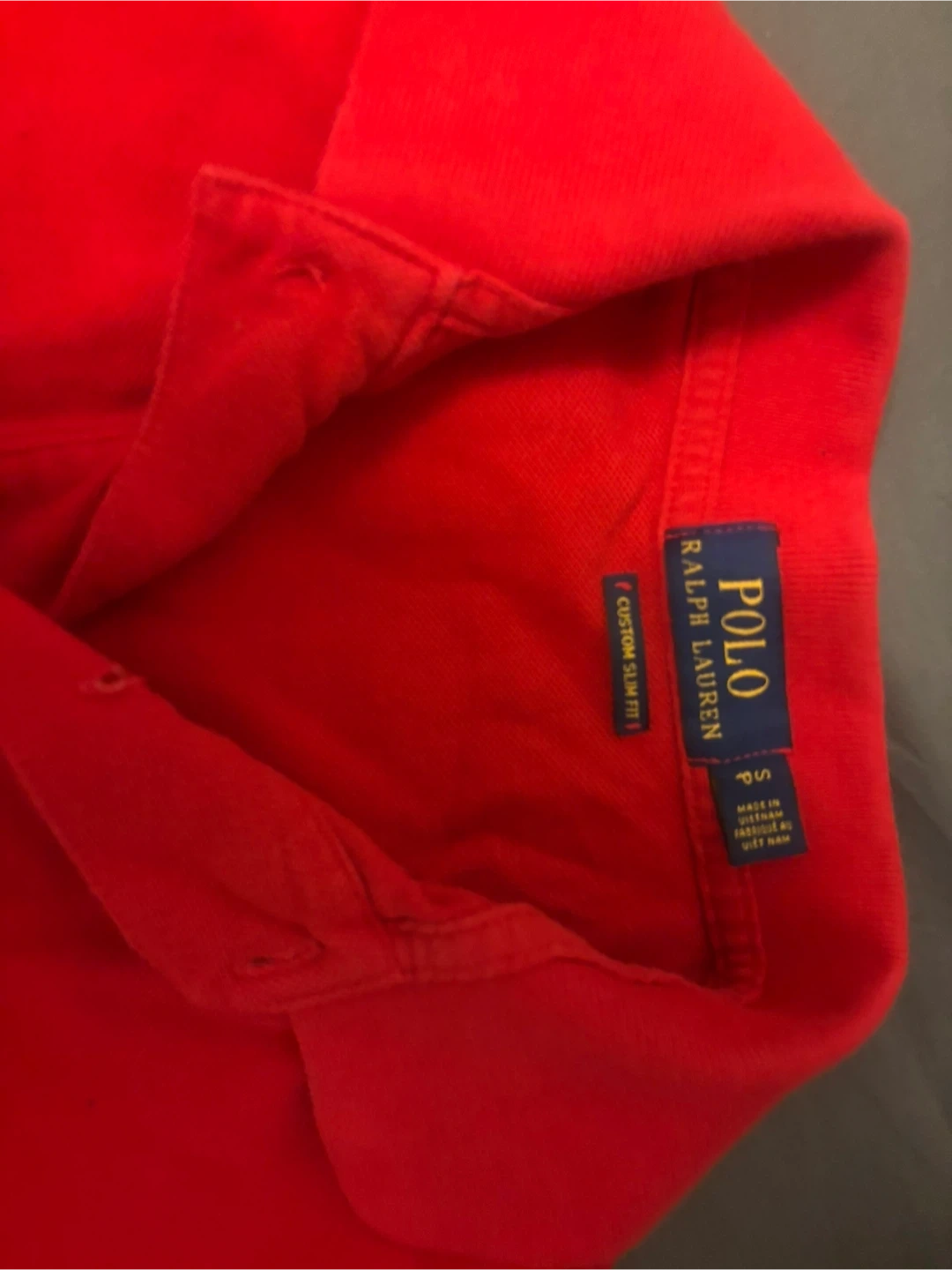 0Selling a Polo Ralph Lauren polo shirt in red! It's a custom slim fit and a size small. Perfect for a casual, classic look
