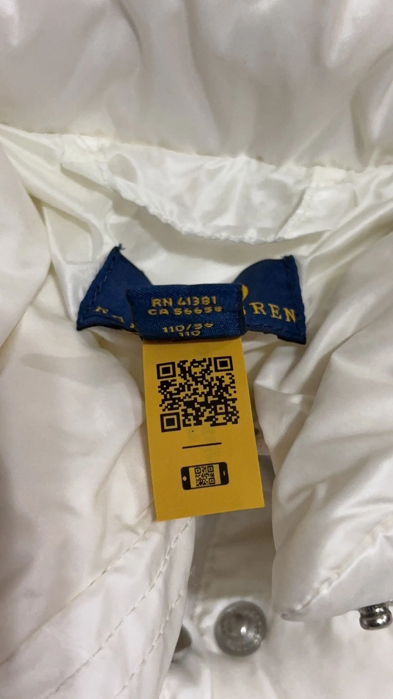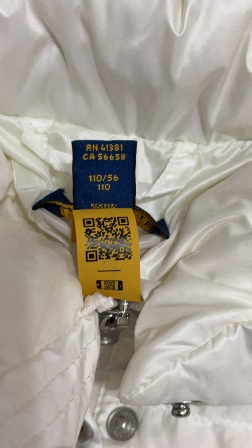 50White puffer jacket in excellent condition. Size 110/56. Has a hood. For 4/4T. Small stain on hand area Pickup Richmond