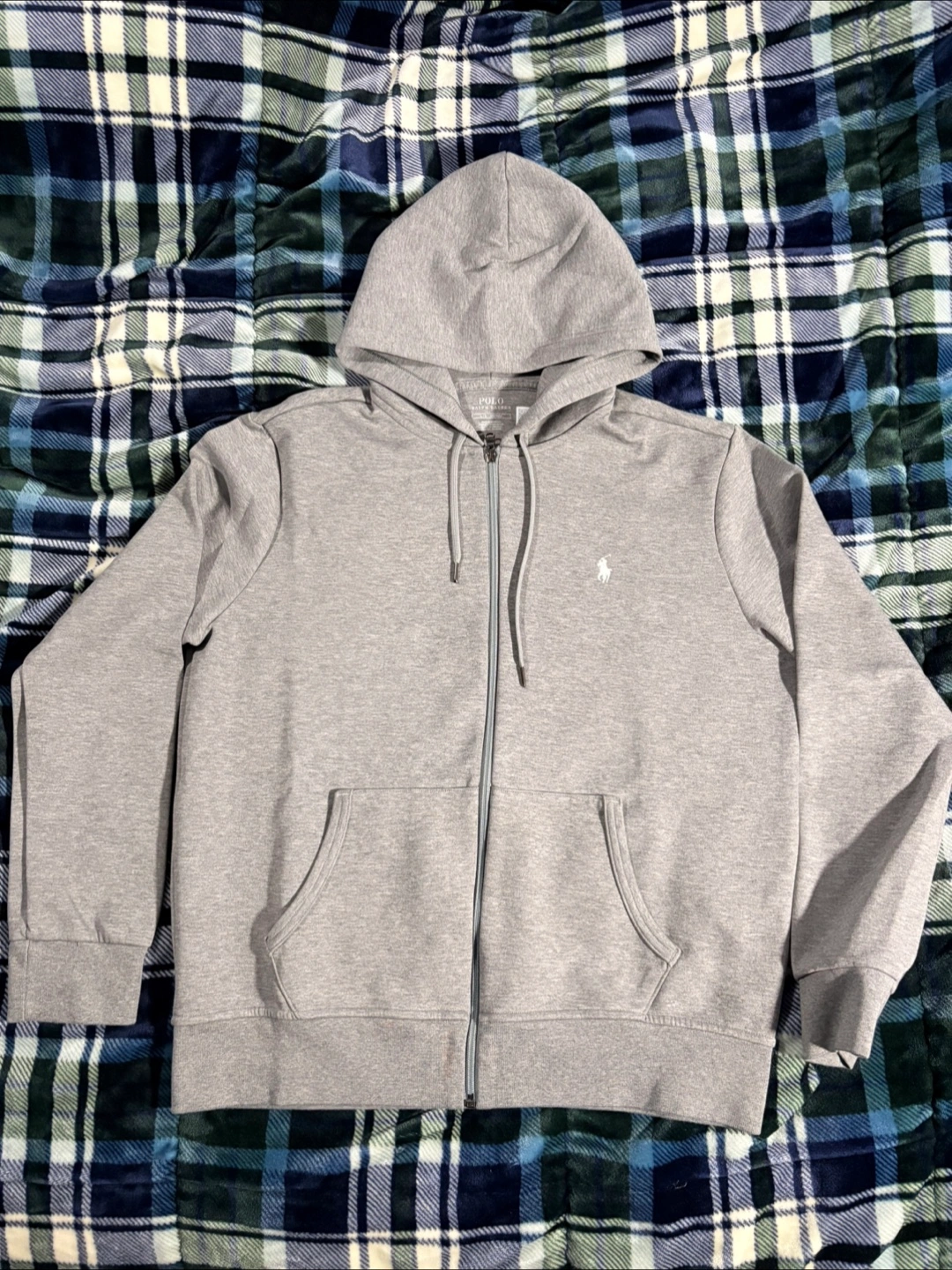 73This Ralph Lauren full-zip hoodie is made from a premium double-knit fabric that’s soft, durable, and stylish. Timeless design in a clean grey color with the classic embroidered pony on the chest. Great for casual wear or layering in cooler weather. 🧵 Details: • Color: Grey • Size: Men’s Large • Full-zip front with adjustable hood • Split kangaroo pockets • Ribbed cuffs and bottom hem • Excellent condition – barely worn, no damage or stains 📲 Message me if you’re interested or want more photos!