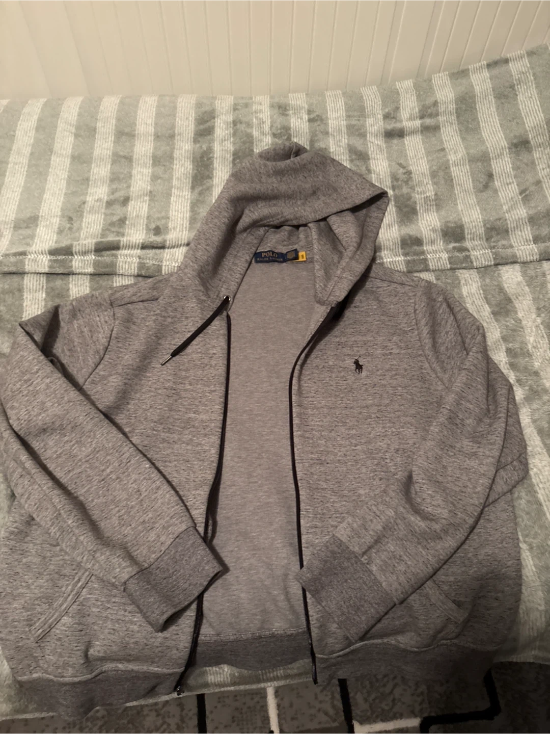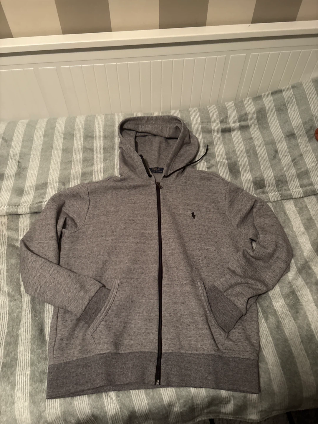10Selling a Polo Ralph Lauren zip-up hoodie in size large. It's a comfy grey colour and in great condition. Perfect for layering or just lounging around!