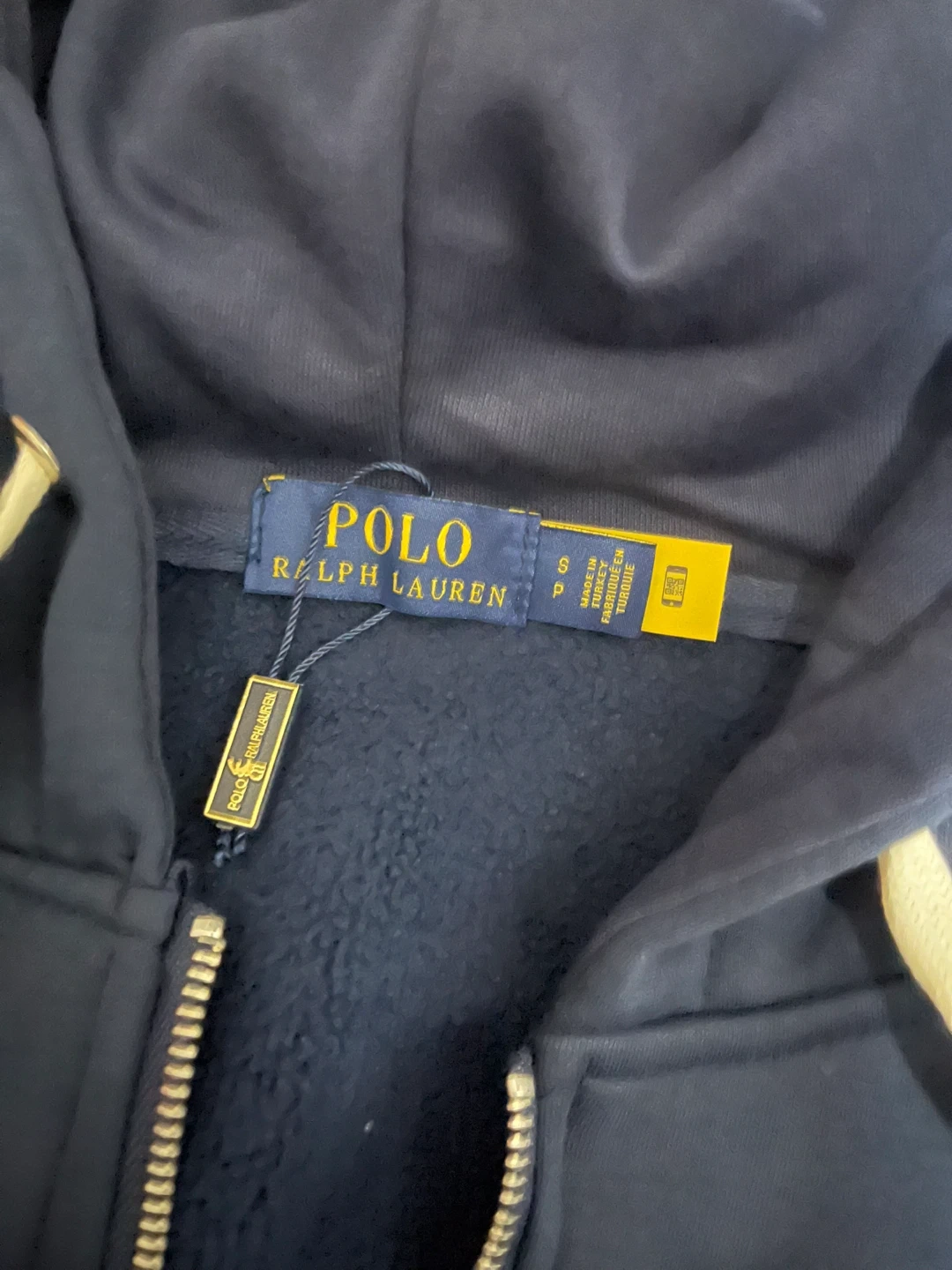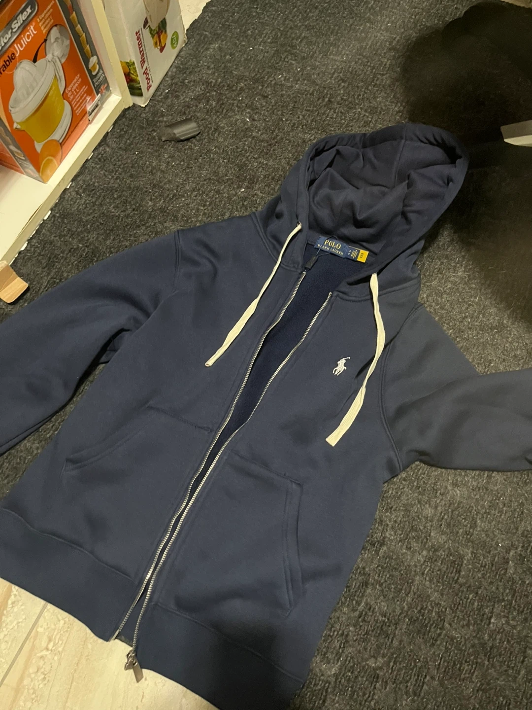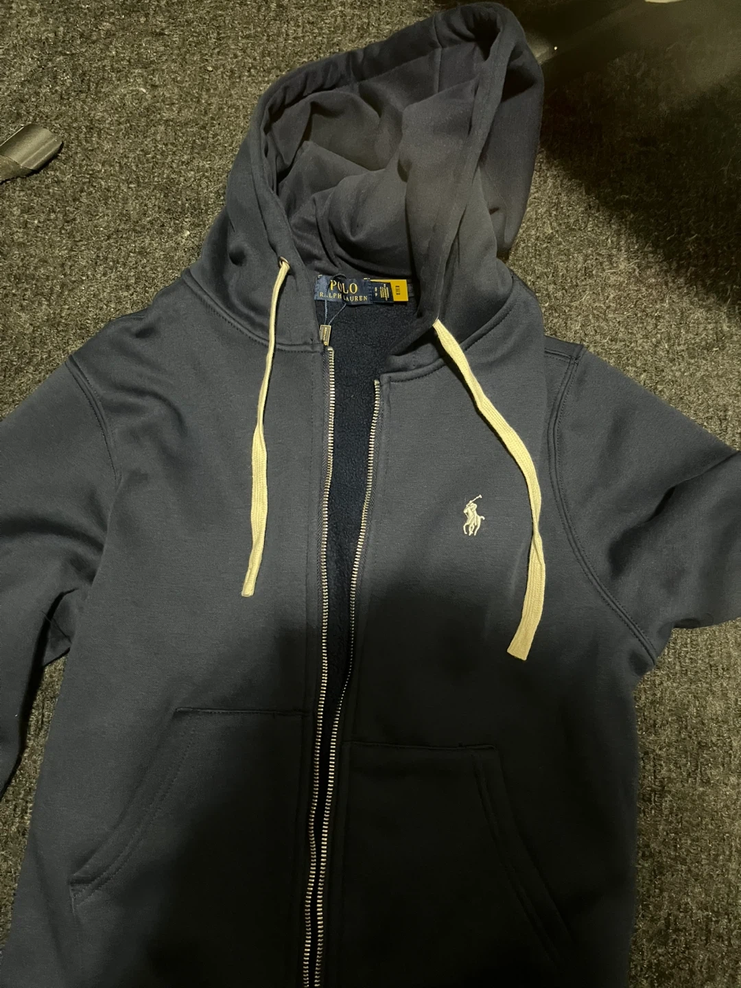 Authentic Polo Ralph Lauren zip-up hoodie in navy blue! It's a size small and features the classic Polo logo. Comes with bag and tag off.