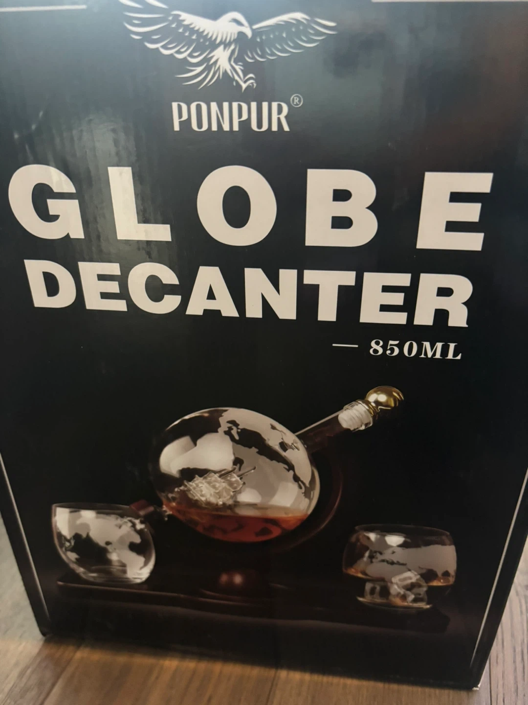10Selling a brand new Ponpur Globe Decanter set! It comes with the globe decanter (850ml), two glasses, and stainless whiskey balls. The set also includes a glass ship sculpture and coasters. It's still in its original box
