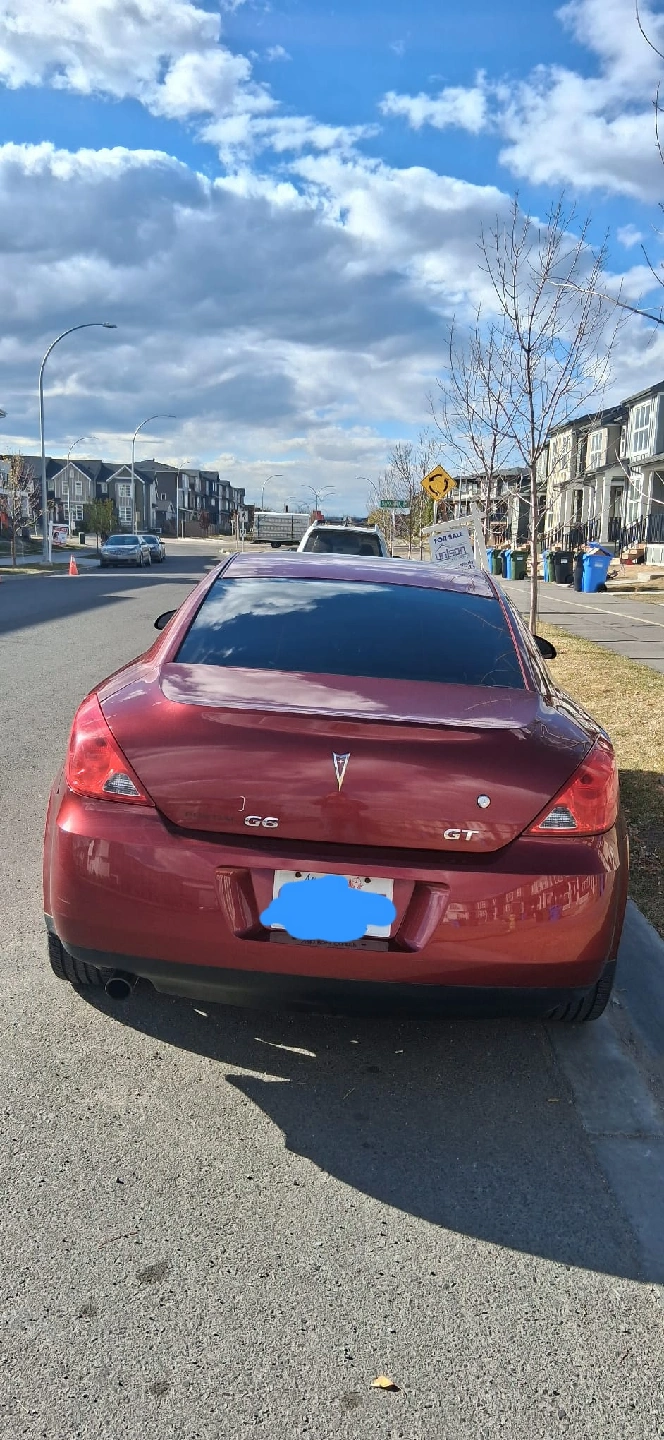 10Pontiac G6 GT – 2 Door Coupe Well-maintained and in great running condition. No rust on the body. Equipped with a powerful V6 engine and front-wheel drive, this car delivers a smooth and reliable driving experience. Mileage: 270,000 km Number of Owners: 2 Transmission: Automatic Drivetrain: FWD Condition: Excellent – drives perfectly with no mechanical issues Additional features include a great sound system, spacious trunk, and comfortable interior. Perfect for daily driving or as a reliable second vehicle.