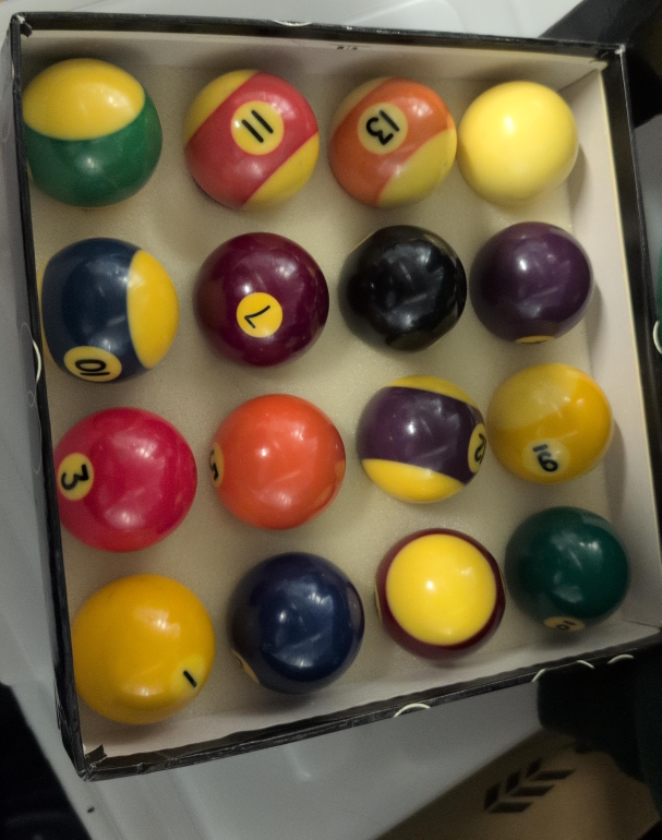 Selling a set of pool/billiard balls. They come in a variety of colours and are numbered. Great for a game room or for replacing lost balls from your current set
