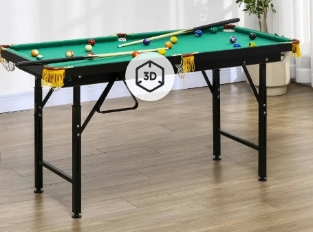 10Mini Pool table Information: Overall dimension: 55"L x 24.8"W x 21.7"-29.5"H (140 x 63 x 55-75 cm). Folded dimension: 57.1"L x 24.8"W x 5.5"H (145 x 63 x 14 cm). Assembly required.