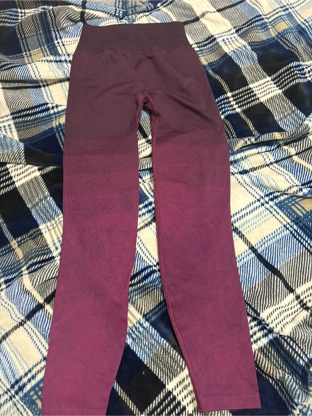 Lululemon Align leggings in size 6. These leggings feature an ombre design with purple and black stripes. Made with a soft, buttery material for ultimate comfort. Pick up cash only