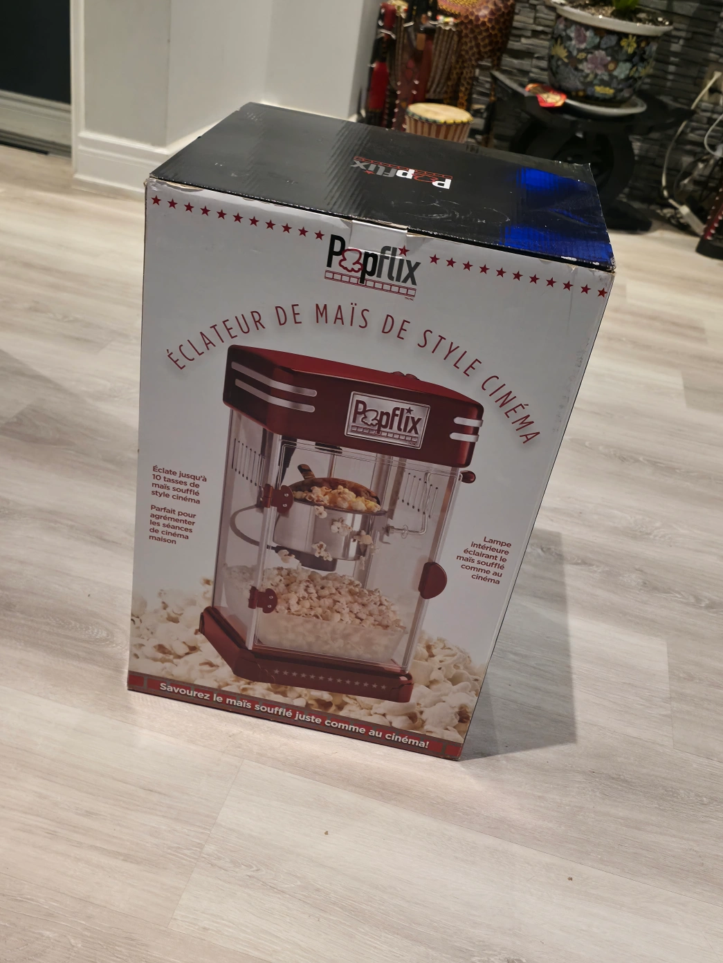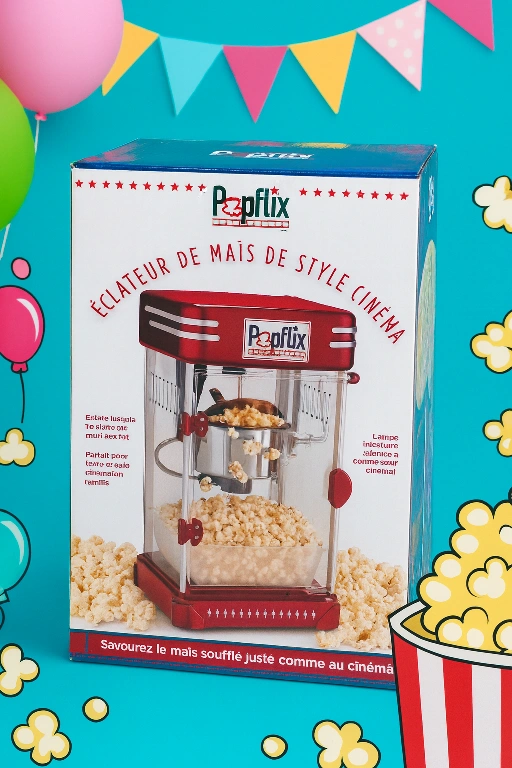 Get ready for movie nights with this Popflix Cinema style popcorn machine! It's perfect for creating that authentic cinema experience right at home. Enjoy freshly popped popcorn just like at the movies!