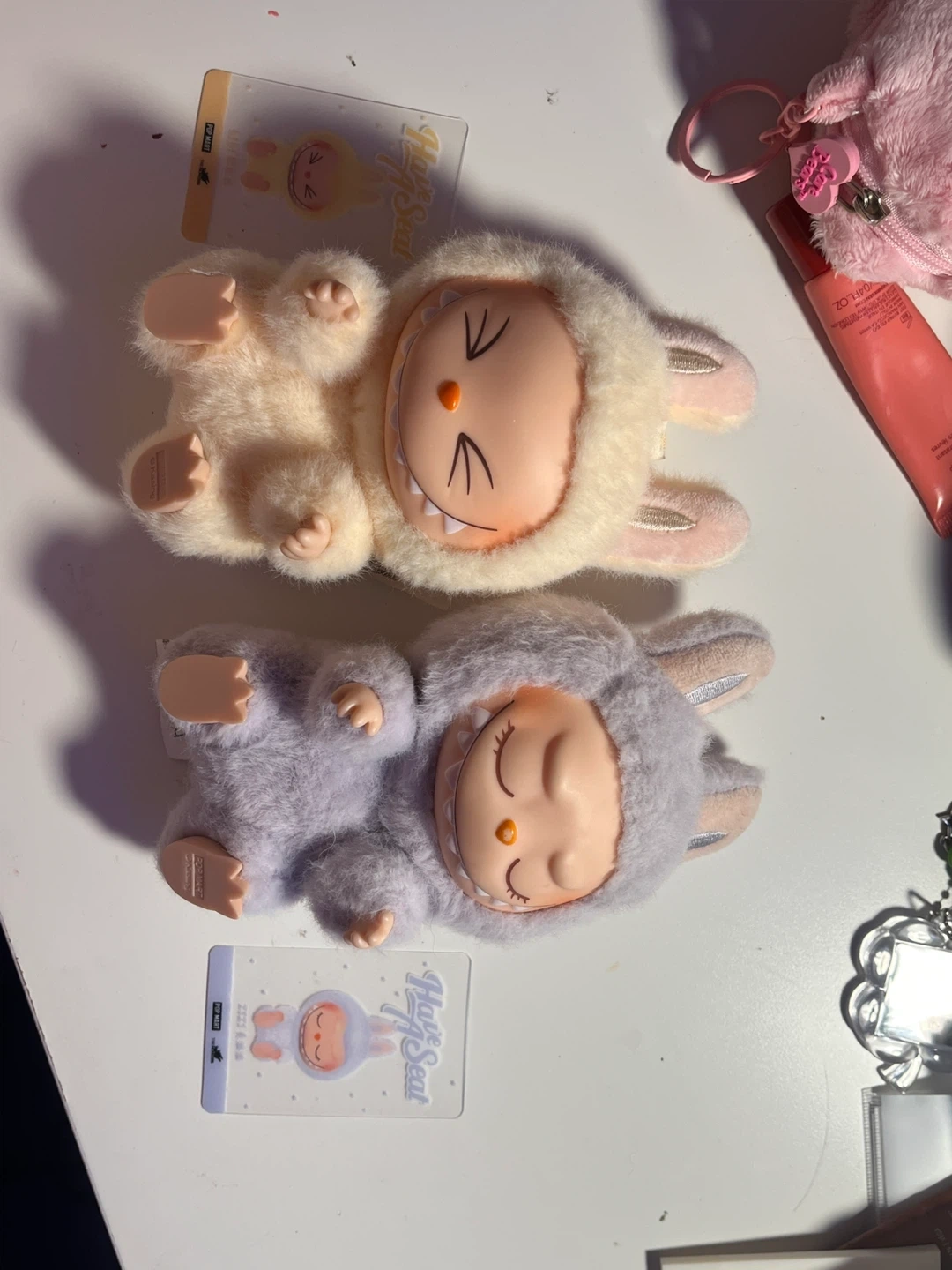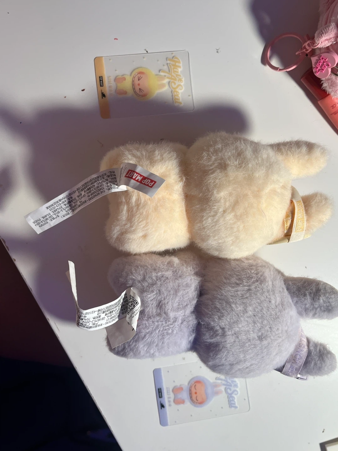 Selling two Pop Mart have a seat Series labubus One is a light yellow colour (Sisi) and the other is light purple (zizi) They're in great condition and would be a lovely addition to your collection with QR code verify so you know it's real pop mart (one for 60)
