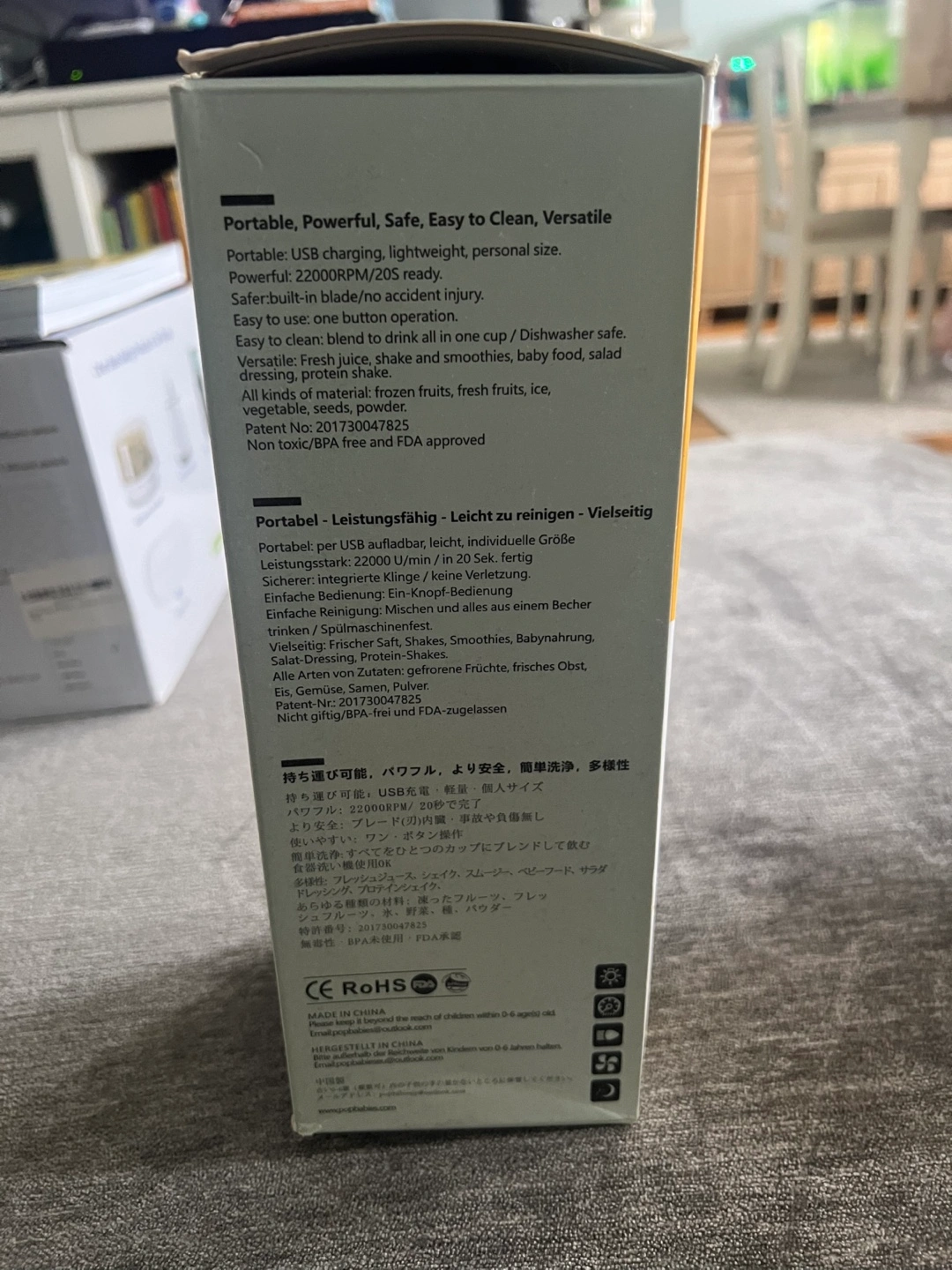I'm selling a PopBabies portable blender and mini mixer! It's lightweight, powerful, and easy to clean. It's great for fresh juice, shakes, smoothies, baby food, salad dressing, and protein shakes. The blender is USB rechargeable and has a built-in blade. It's also dishwasher safe!