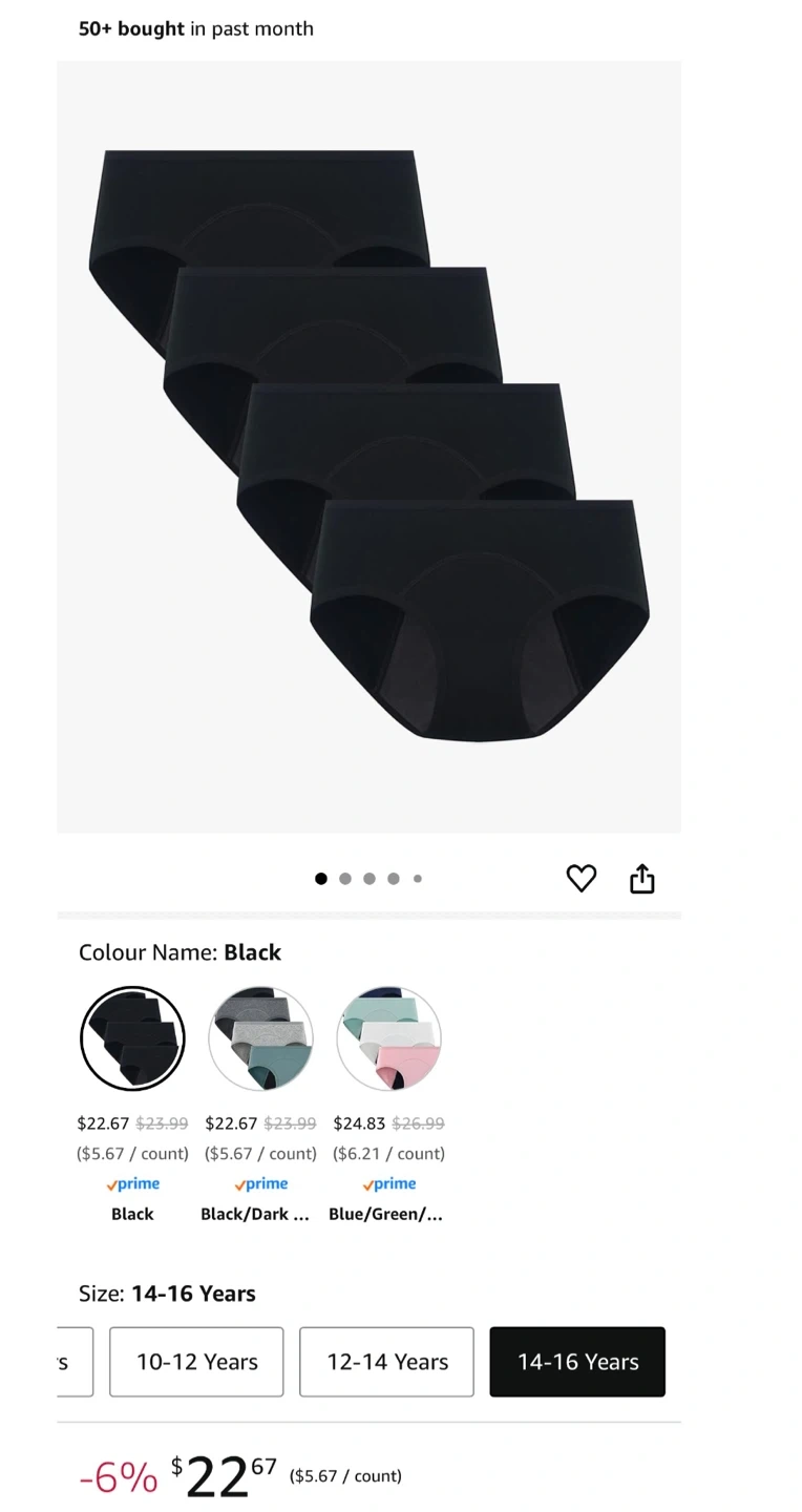 Selling NEW 4pk pair of Popkok period underwear in size XL (14-16 Years). It's black and made of 95% cotton and 5% spandex for the body, with a 100% cotton crotch. Comes in the original packaging!