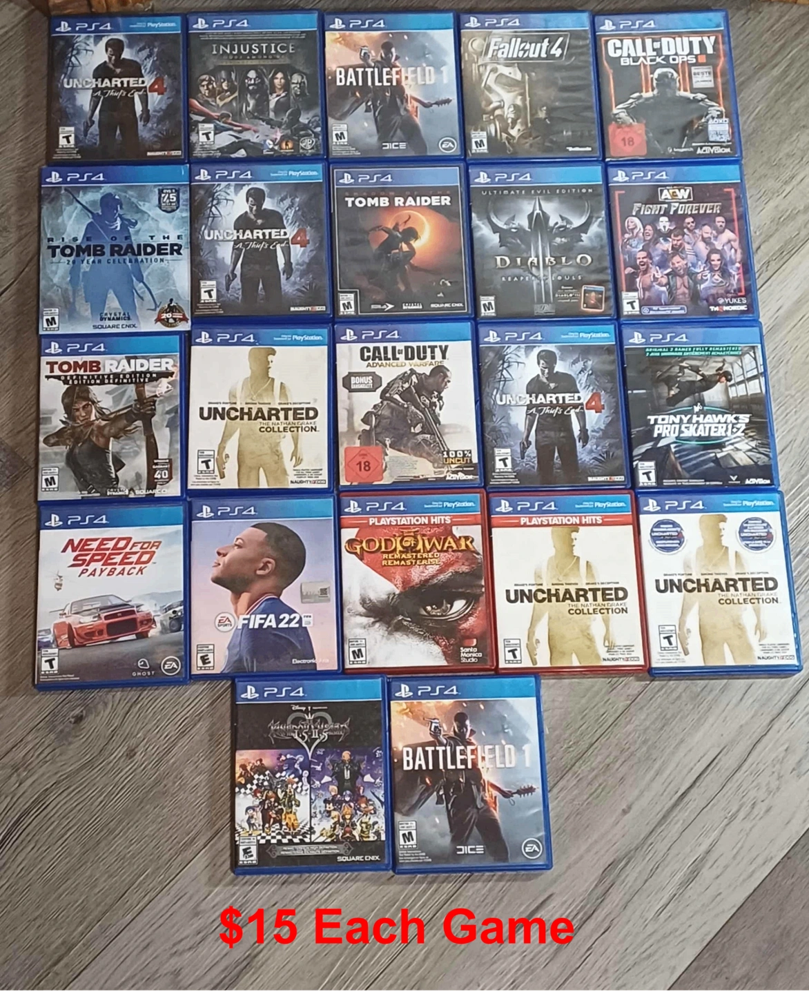 41📍Popular PS4 Games Lots! With Clean Cases and Tested Discs 💸 Prices 💸 🚀Marked prices in the following pictures, please take a look and pick your Taste desired games. ------------------------------------------- ✔️ The games are in tested and working condition. The cases are clean and neat! 🐺 Several Games Have Manuals! 🔥 Check my other listings for More+ ✅ Cash or E-Transfer accepted 📍 Pickup in Harvest Hills NE 💬 Fast replies — message me to claim your item