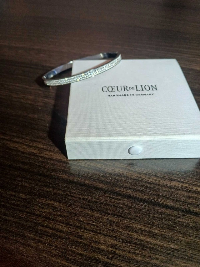 This is a Couer de Lion bracelet with sparkling accents, in excellent used condition. It comes complete with its original box, ready to add a touch of elegance to your collection. Brand: Couer de Lion, Type: Bangle Bracelet, Colour: Silver, Accents: Crystals. Considering similar items on Kijiji are often listed between $100 and $250, I've priced this lovely piece at a sweet spot for a quick and happy sale. If the ad is up, the bracelet is still available and waiting for its new home!