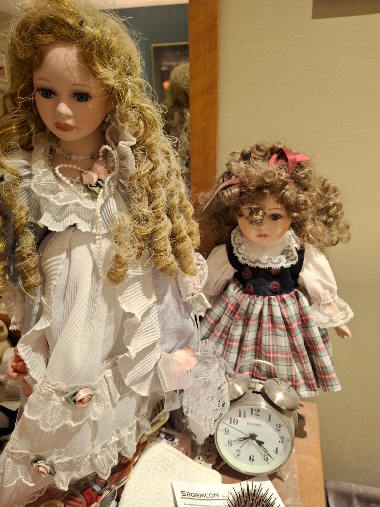 I have a few porcelain dolls for sale! - "Emily New Moon" Porcelain Doll in box - "Sabre Collection" Porcelain Doll with wooden stand in box