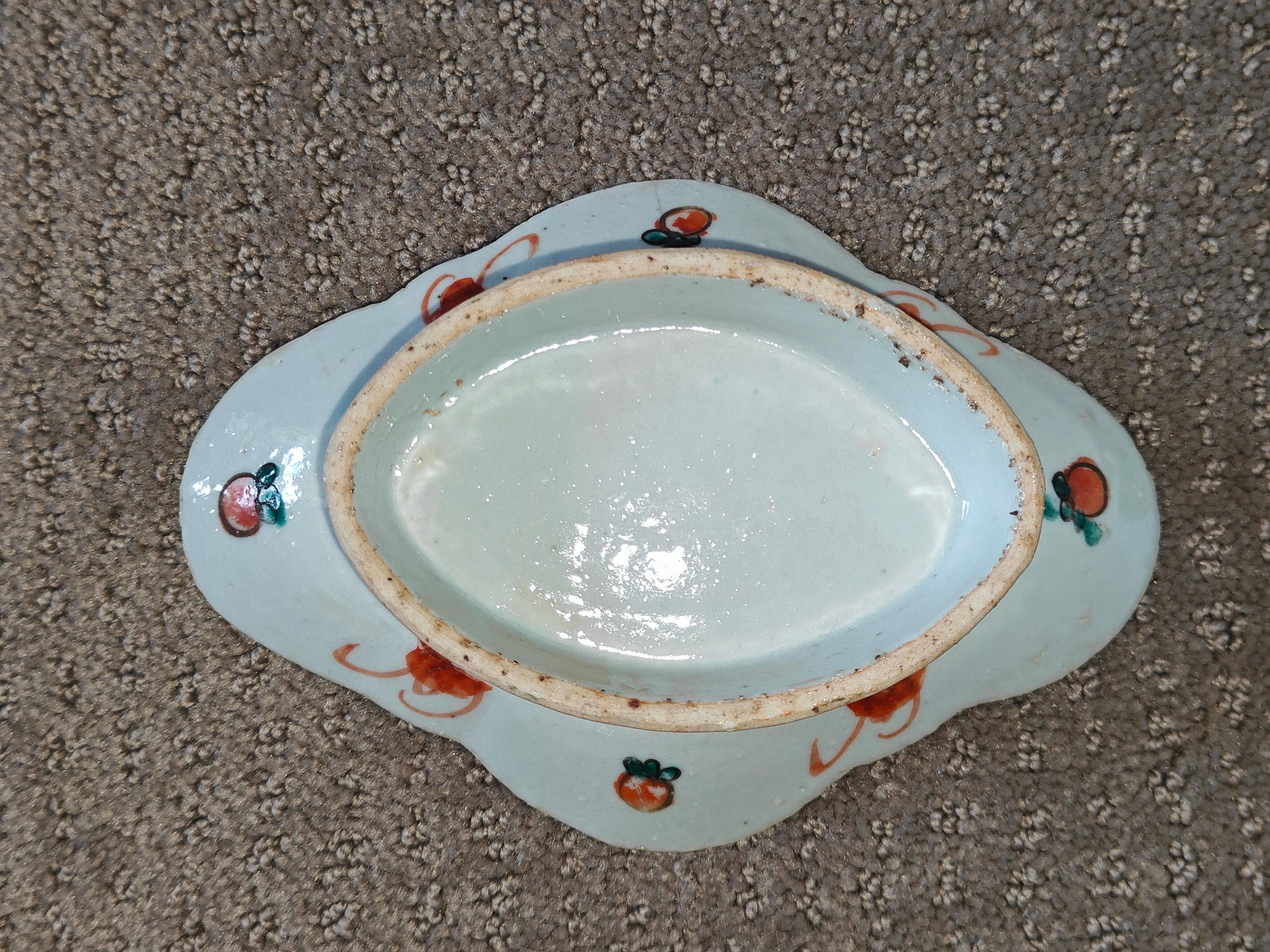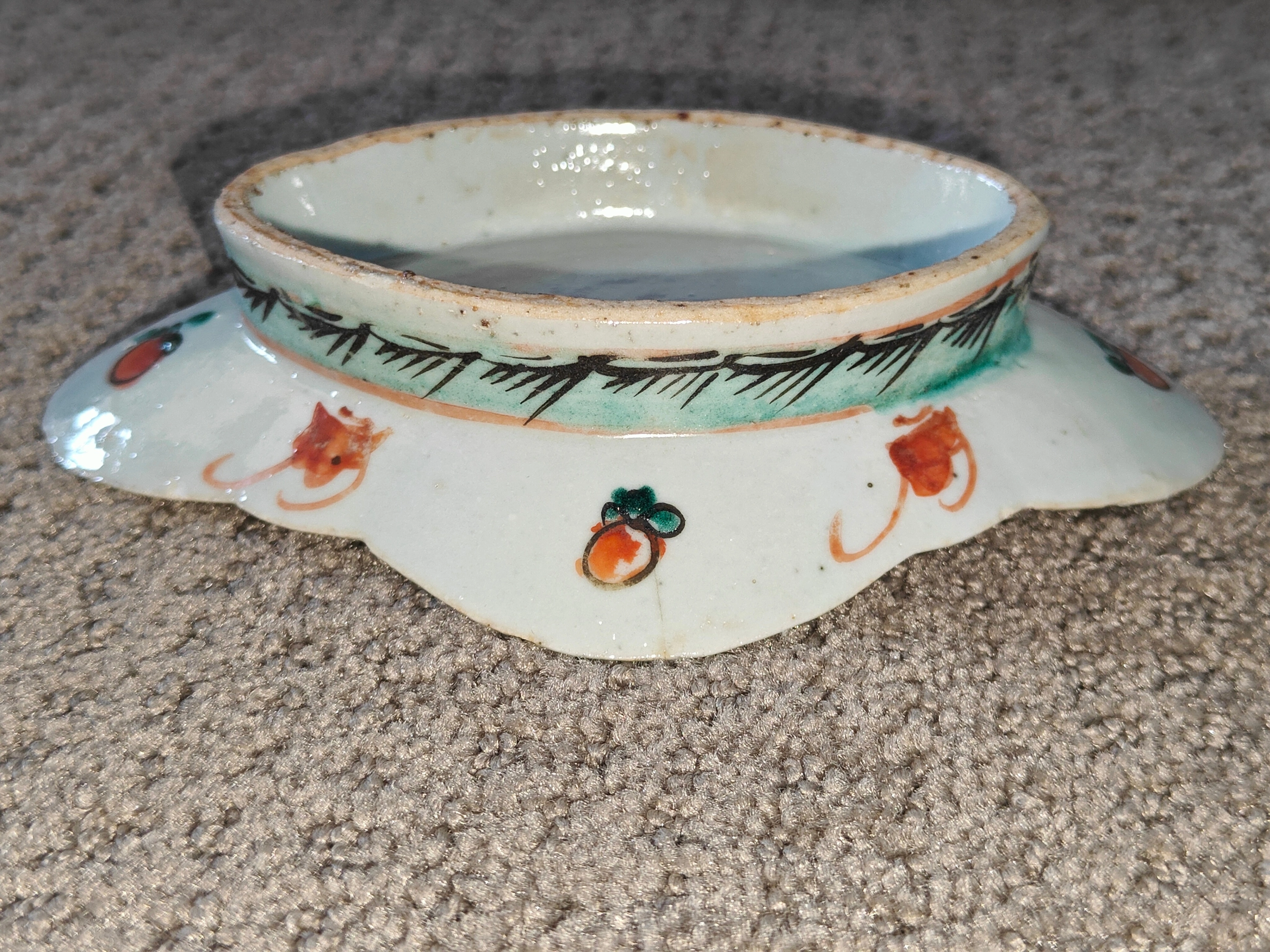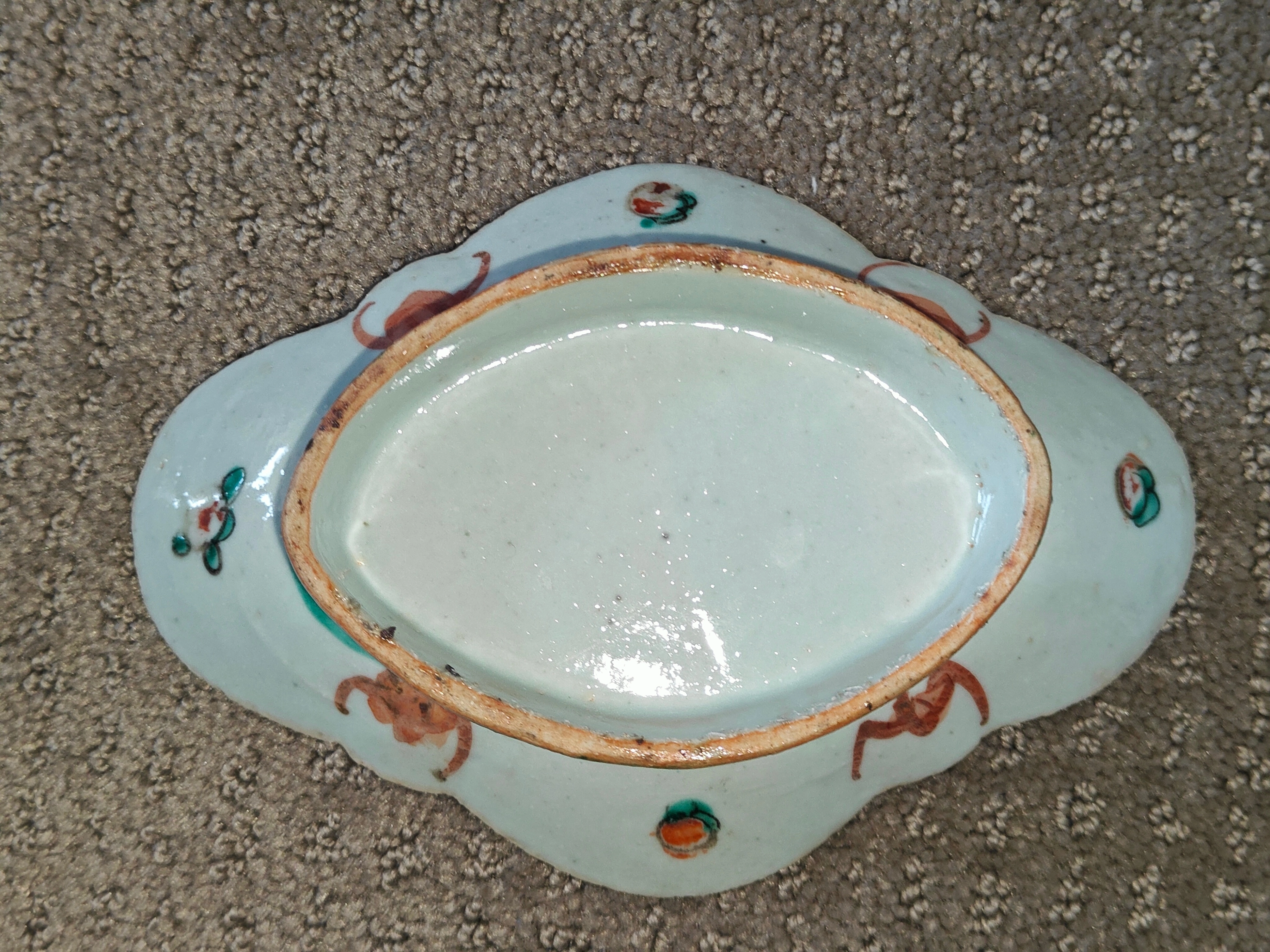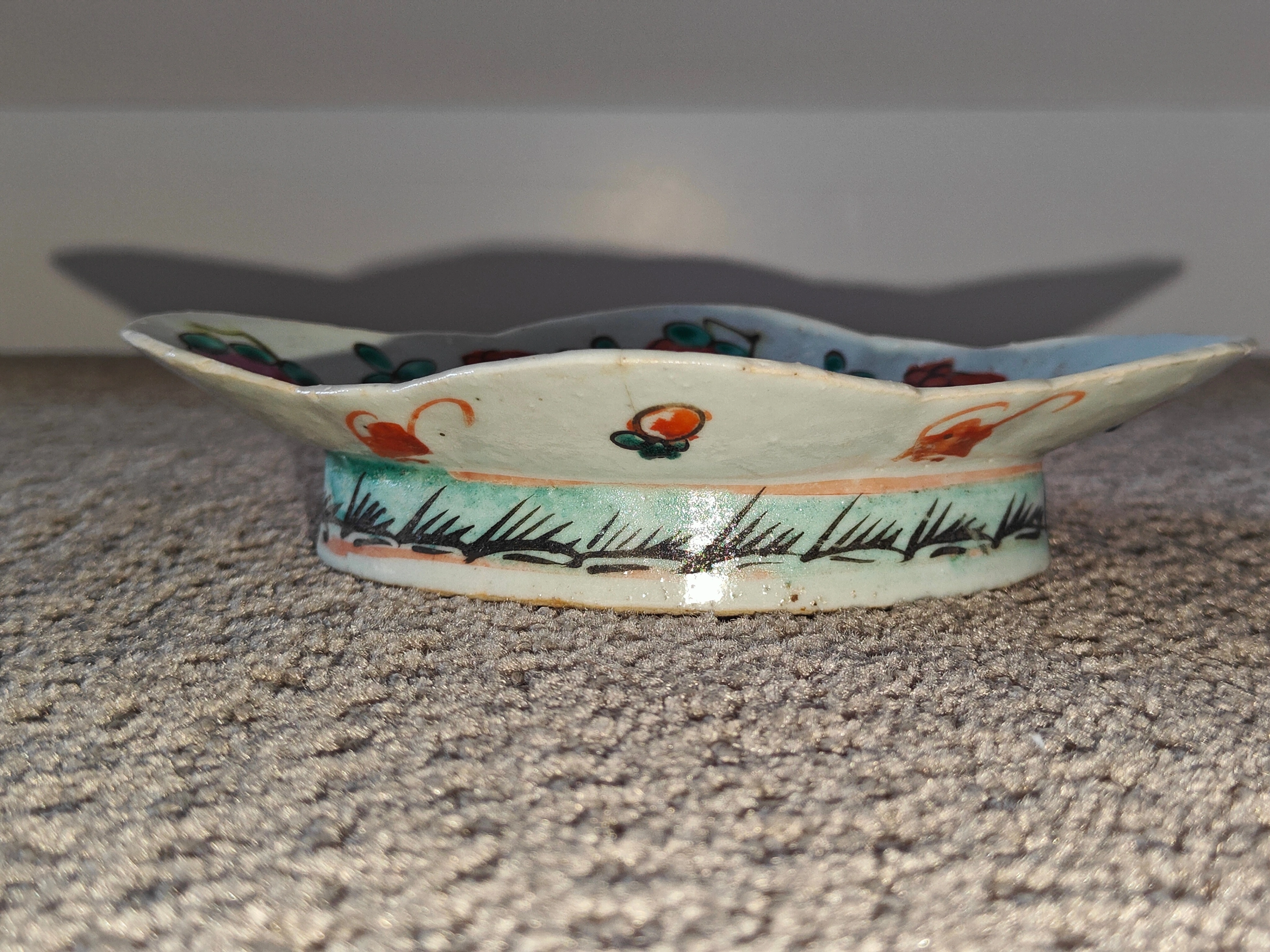 174I am selling a Set of 2 Vintage Chinese Porcelain Hand Crafted and Hand Painted Famille Rose Floral Footed Plates in excellent, antique condition. No cracks or chips. There are tiny pits and dark specks in the glaze and a couple of glaze irregularities, done during the making. We are delighted to present this exquisite set of two vintage Chinese porcelain footed plates, a beautiful representation of the Famille Rose enamel style. These plates are in excellent antique condition with no chips or cracks, showcasing the delicate artistry of hand-painted porcelain from a bygone era. Condition & Provenance: * The plates are in excellent condition for their age. There are no chips or cracks, and the hand-painted enamels remain vibrant. The minor "glaze irregularities" noted are a natural part of the crafting process and do not detract from the beauty of these unique pieces. Exquisite Craftsmanship & Symbolism: * Each plate is a masterpiece of craftsmanship, featuring a vibrant and intricate design. The delicate overglaze enamels, a hallmark of the Famille Rose technique, bring the floral motifs to life. The plates are adorned with a variety of symbolic flowers and fruits: * Cherry Blossoms & Plum Blossoms: These flowers are not only beautiful but also symbolize resilience, purity, and renewal in Chinese culture. * Longevity Peaches: A powerful symbol of immortality and good fortune. * Vibrant Floral Array: An assortment of other lively flowers creates a stunning visual display. The plates have an elegant, scalloped edge and sit on a delicate footed base, a classic design element that adds to their sophistication. The hand-crafted nature of these pieces is evident in the subtle, charming imperfections, such as tiny pits and dark specks in the glaze, which are common in antique porcelain and a testament to their authentic, handmade origin. Dimensions: * Width: 6-7/8" * Length: 4-3/4" * Height: 1-1/4" This set is a perfect addition for any collector of Chinese antiques, Famille Rose porcelain, or anyone seeking to add a touch of timeless elegance and cultural history to their home. These plates are not just decorative items; they are a window into the rich artistic traditions of China. Comes from a pet and smoke-free environment. Pickup in Mount Pleasant (NW Calgary)