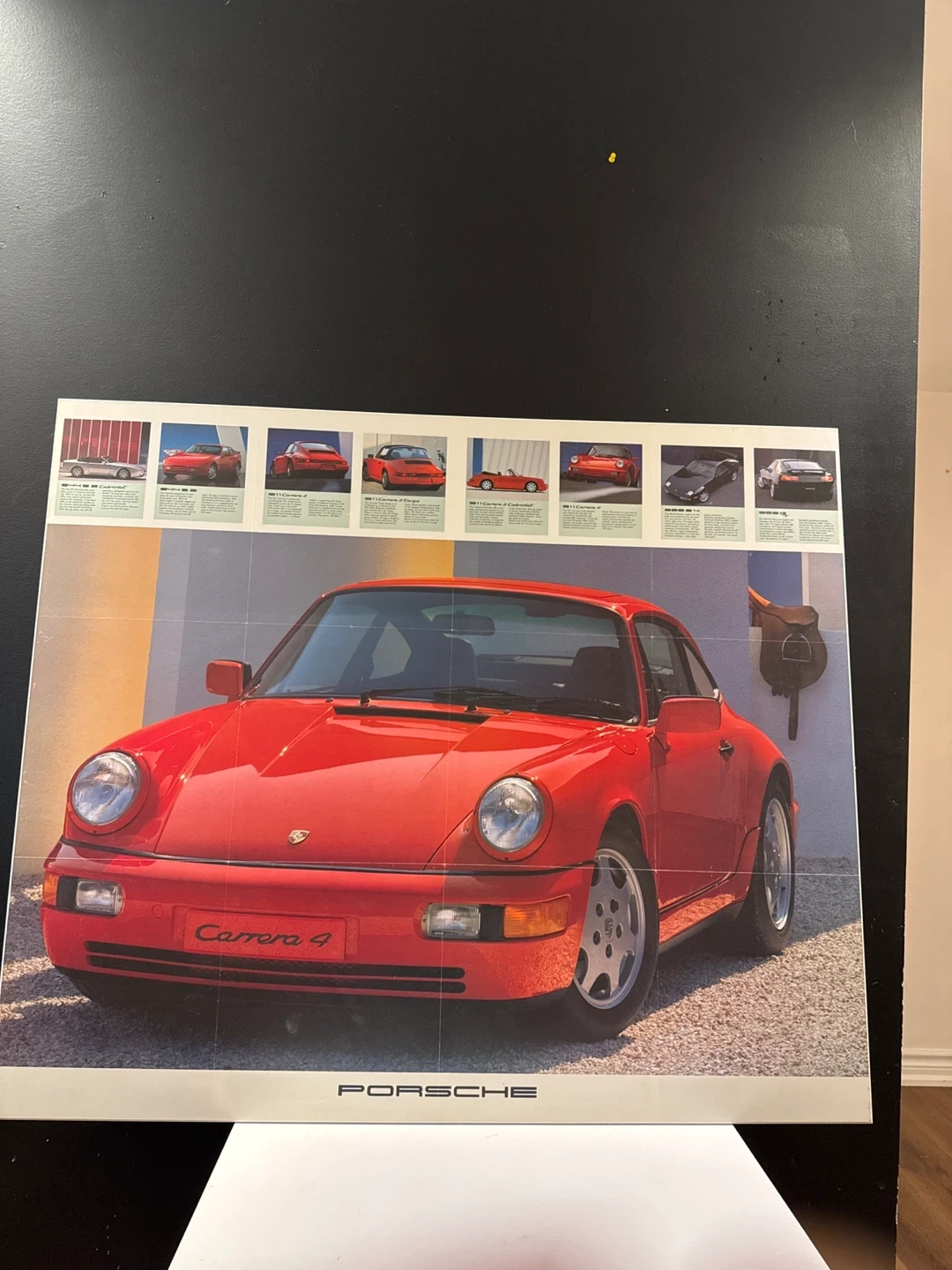 65A cool poster featuring the Porsche Carrera 4 and other classic Porsche models! It's a great piece for any car enthusiast or to add some vintage flair to your space