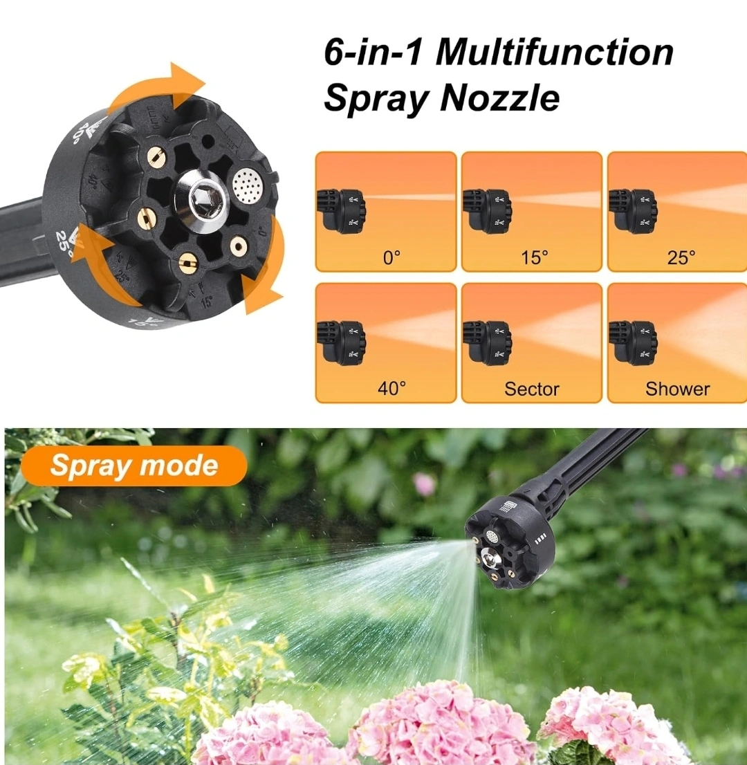 ✅ 6-in-1 Nozzle – Rotate between 0°, 15°, 25°, 40°, straight stream, and shower modes