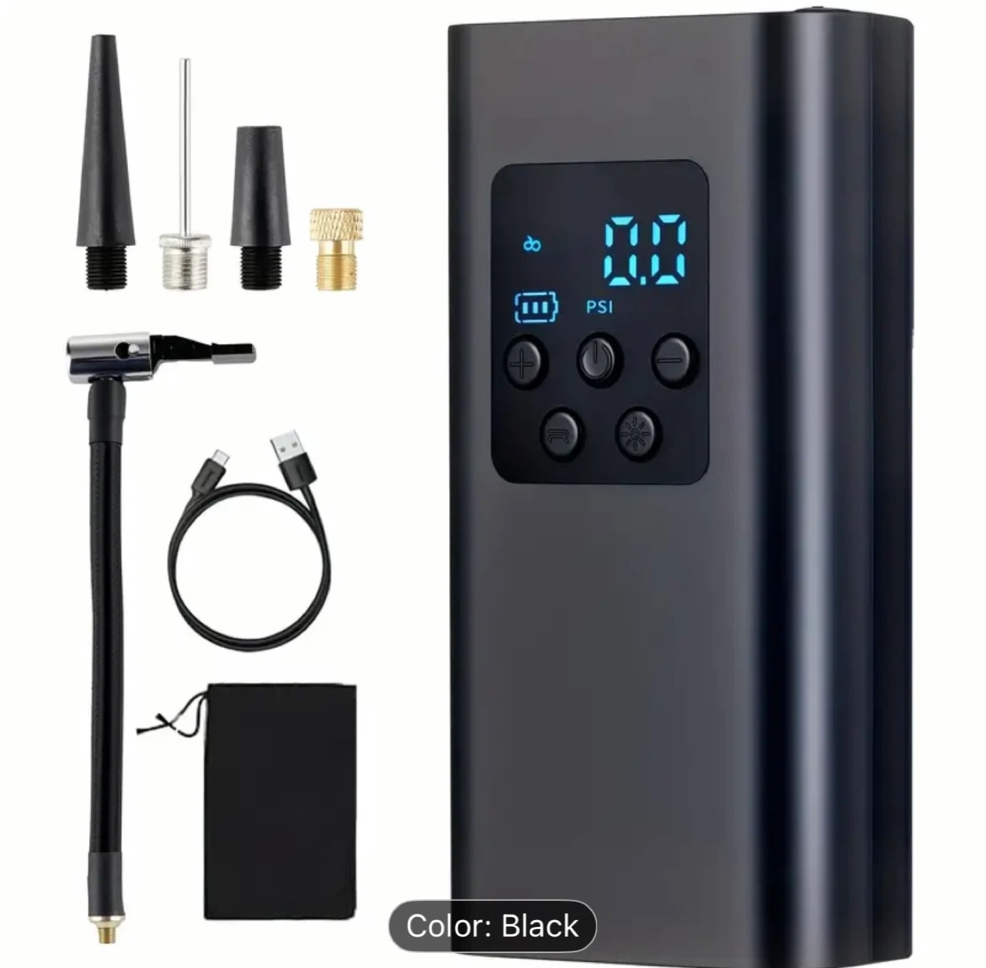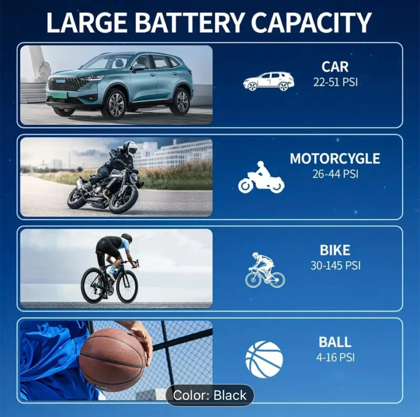 This portable air compressor is great for inflating car tires, motorcycle tires, bike tires, and even basketballs! It's wireless and portable, so you don't need any external power supplies. It also has an auto shut-off feature once it reaches the set pressure, making it convenient and safe to use