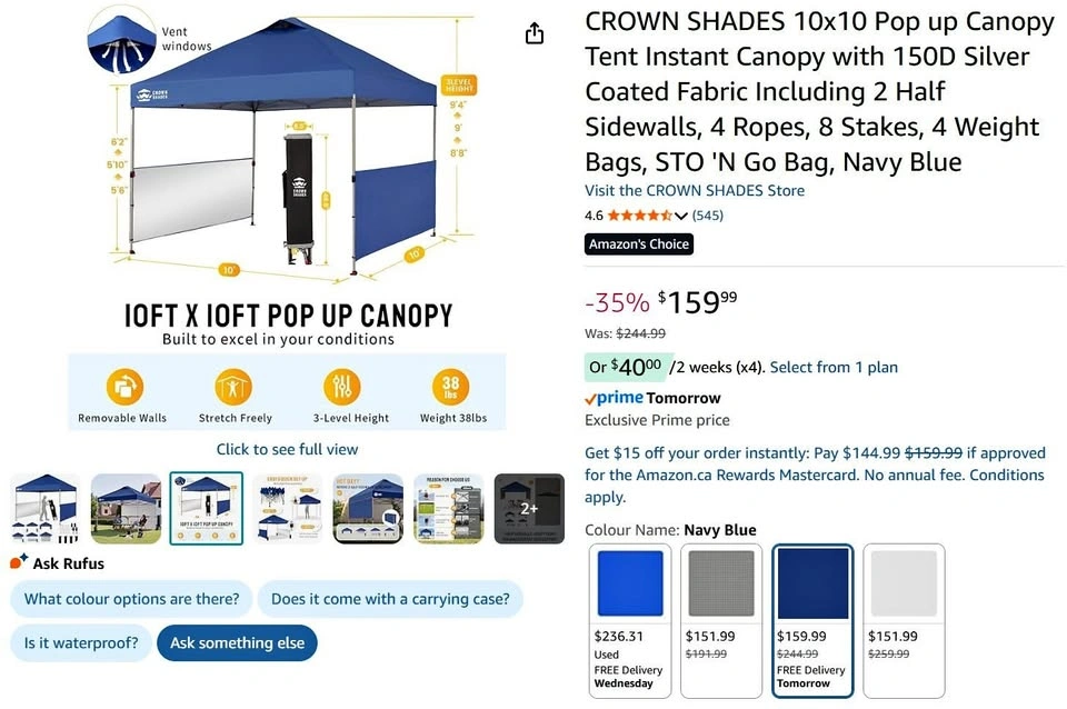 6010ftx10ft portable pop up canopy with carry case. This item is brand new sealed in box. Message me if you need any further details. Pickup preferably in Aurora.