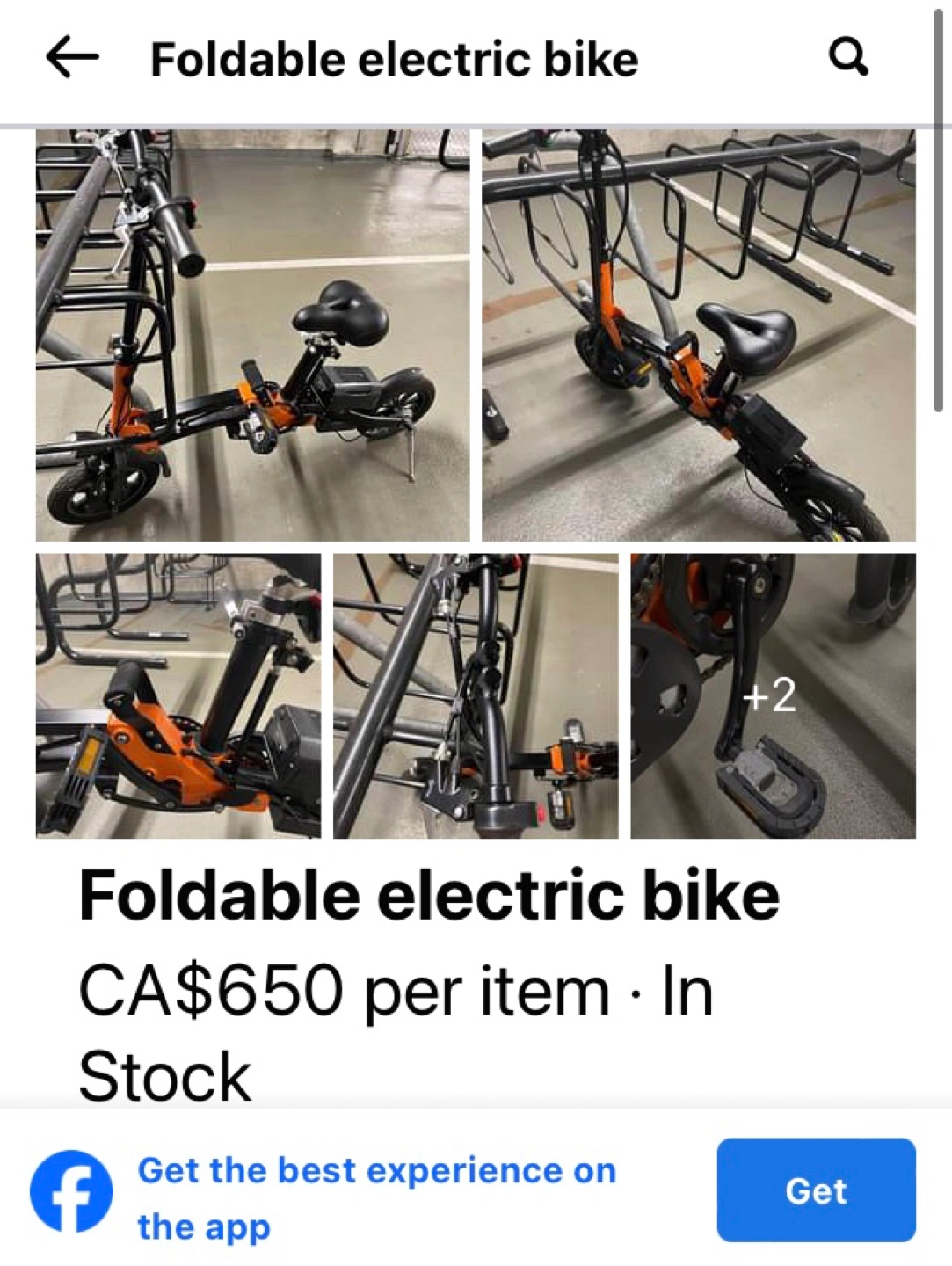 139Lightweight electric folding bike. Easy to transport and store. Ideal for short commutes or recreational use. Last picture is courtesy of Marketplace, the same model but in Orange.