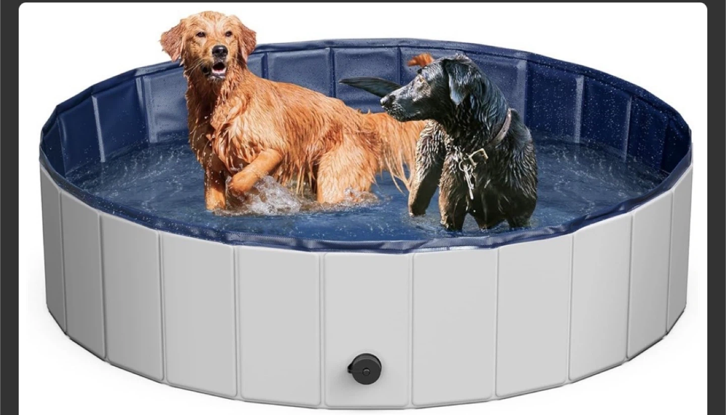 This is a portable and foldable pet pool, perfect for dogs to cool off during the summer months! It's easy to set up and store away when not in use. Great for small to medium-sized dogs!