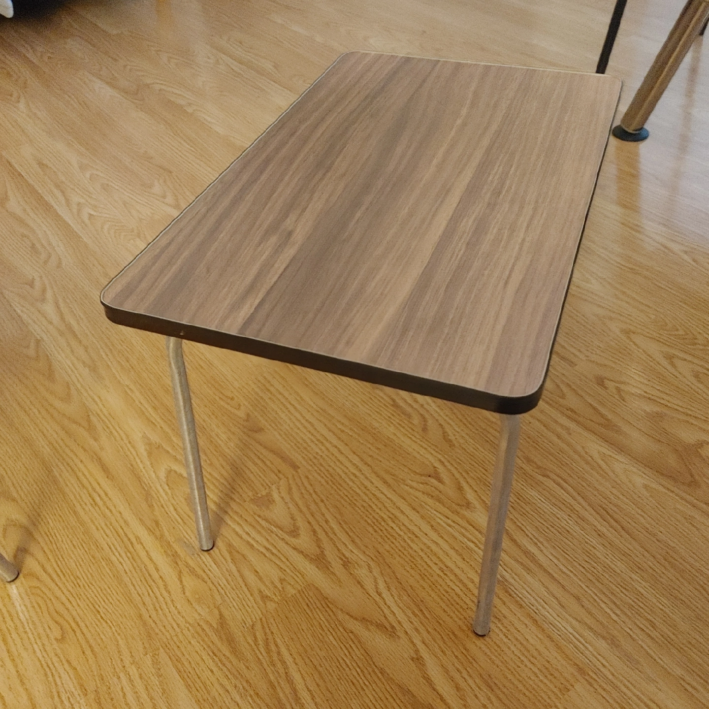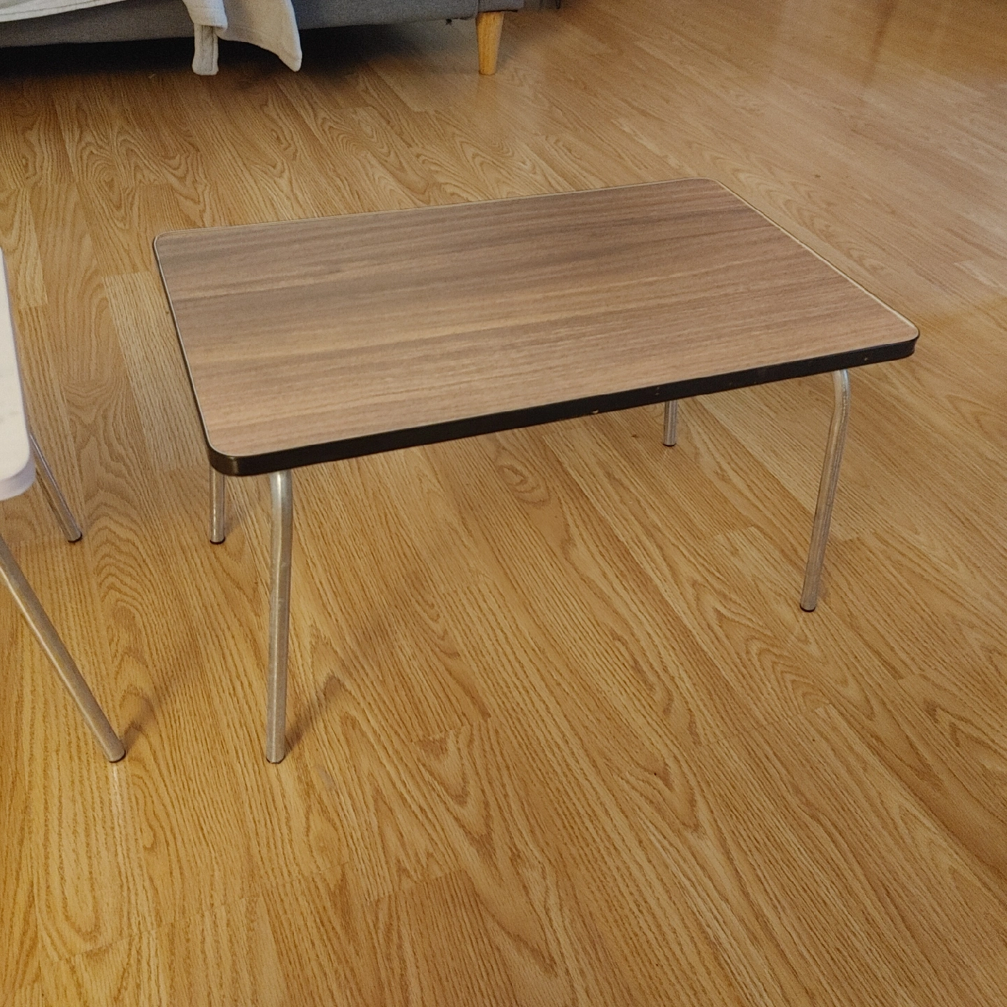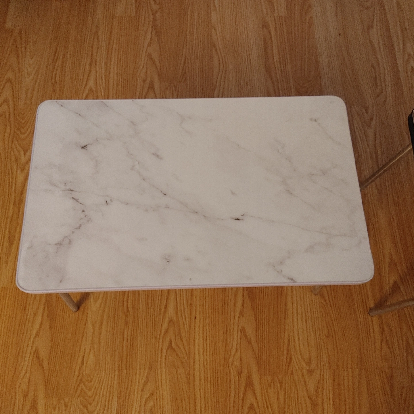 Selling a folding tables perfect for small spaces or as a temporary work surface. The legs fold easily for storage One has a marble-patterned top and the other has a wood-grain top. Both are brand new and would look great in any room each table dimensions 19" x 12" x (11"tall)