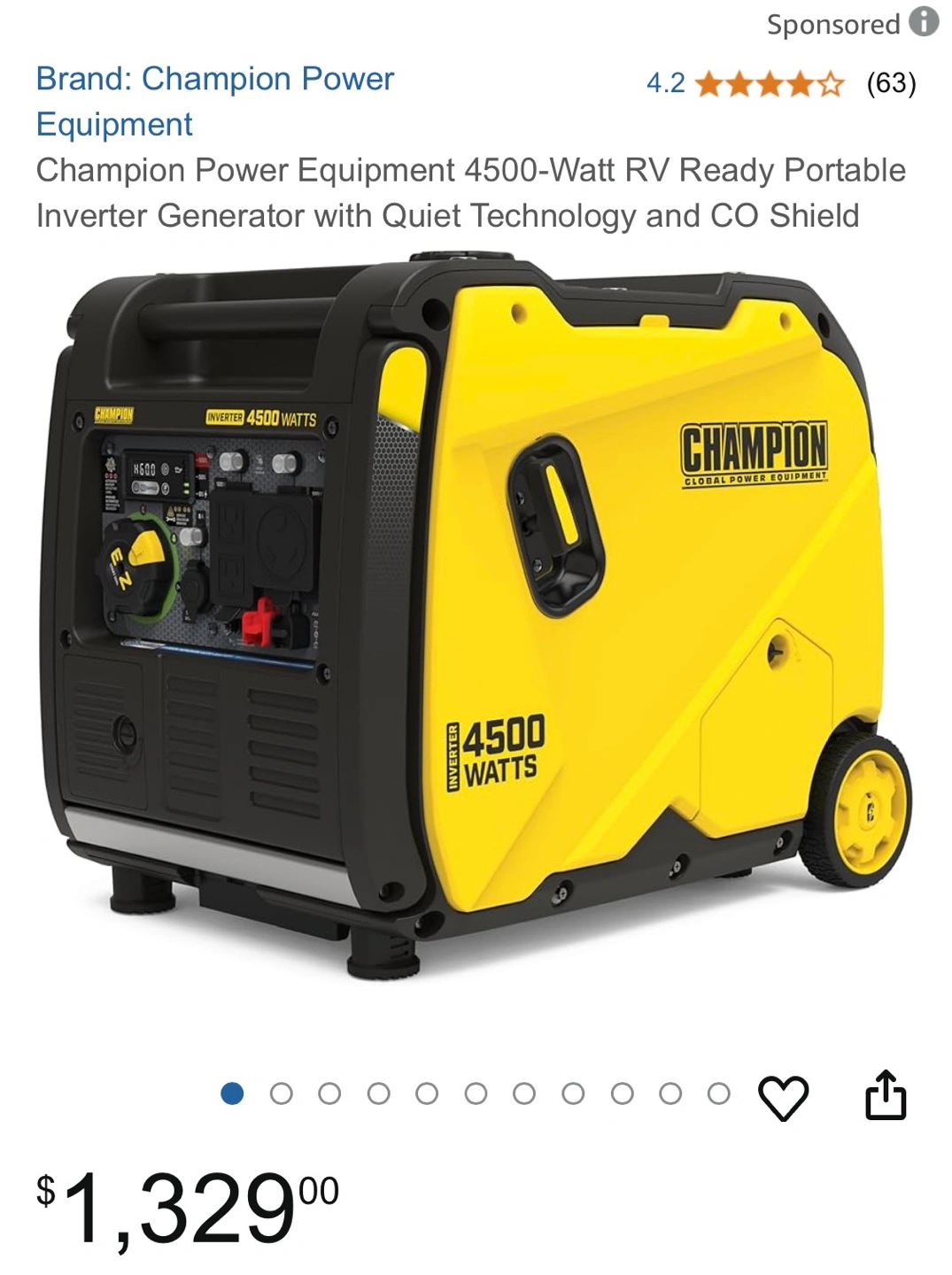 4500 watts portable generator slightly used for food truck business during winter. We change business so we are letting it go. From $1,400. We are selling it for less