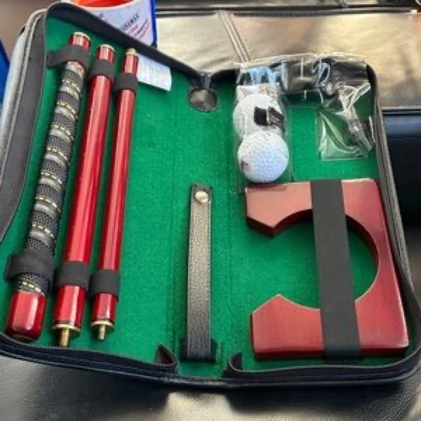 30Looking to practice your putting game on the go? This portable golf putter set is perfect for travel or office use! It comes complete with a putter, golf balls, and a convenient carrying case. The set is in great condition and ready for its next owner. Get ready to improve your putting skills wherever you are!