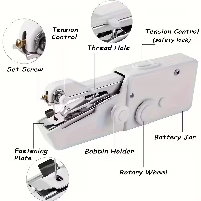 10Portable Handheld Sewing Machine with 3-in-1 Function (Straight, Zigzag, Overlock) - Compact Electric Quick Sewing Machine with 3-Speed Adjustment, Battery-powered (no Plug) For Home, Travel. About this item: Multipurpose Sewing Machine: The handheld sewing machine for beginners has simple threading and automatic movement, making sewing effortless. You can easily solve the sewing problem when you meet the emergency problem of sudden disconnection. Perfect for both beginners and professionals to create or repair projects anytime Two Power Modes: Use 4×AA batteries or a 6V DC power source (not included). This electric handheld sewing machine is easy to operate—just press the power button and start sewing anytime, anywhere Wide Application Range: This portable sewing machine is suitable for a variety of materials, including clothing, silk, leather, jeans, wool, denim, and curtains, among others. As a versatile small sewing machine, it handles fabrics up to 1.8mm thick and even lets you sew without removing garments Easy to Use: Upgraded for higher power and lower noise, this mini electric sewing machine is lightweight, durable, and space-saving. The hand sewing machine includes 26 accessories, making it more convenient and cost-effective than traditional machines Practical Gift: A Handheld sewing machine can perfectly solve small sewing problems, and you can give it to your friends and family. If you have any problems using the mini portable sewing machine, please get in touch with us in time. Please rest assured to buying. Please do not hesitate to contact Richard by email to schedule a pickup time.