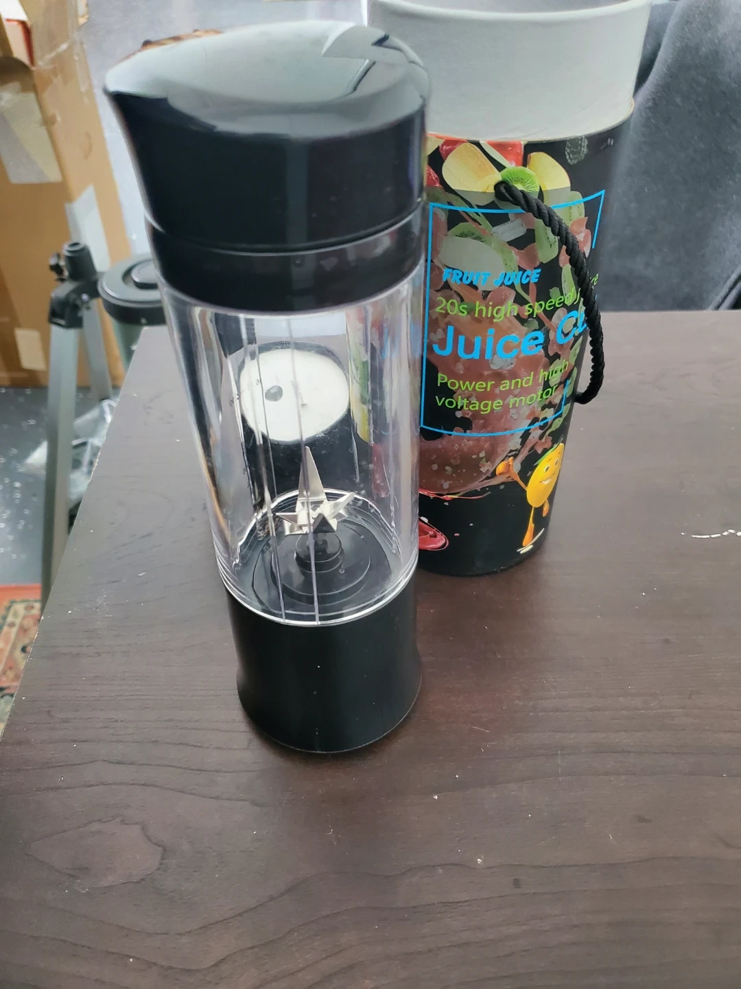 58Selling a portable juice cup blender. It's in great condition and ready to make your favourite smoothies on the go! It features a high-speed motor, and the original box is included. Also included is the charging cable