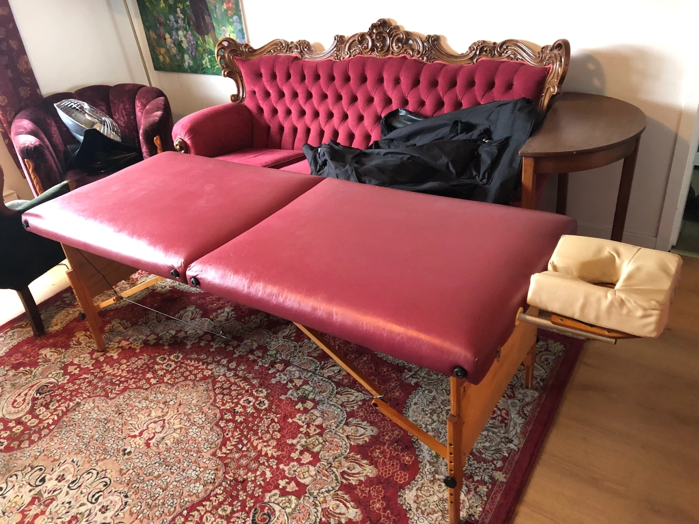 60Selling a portable massage table that's in good condition. It comes with a convenient carrying case. Well used but still solid and very functional. Wider than most tables. The face rest isn’t adjustable. Legs are. If you’re learning massage and on a budget or just want something for personal use this table is great! I bought a new one so I’m downsizing.