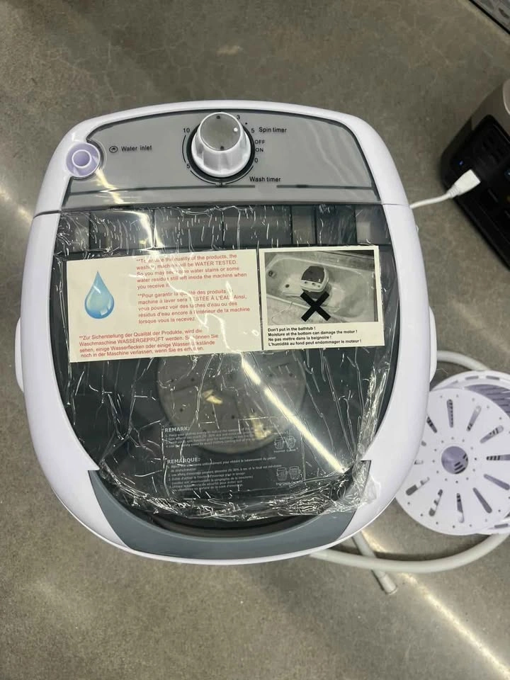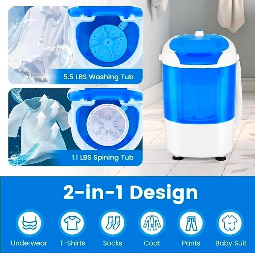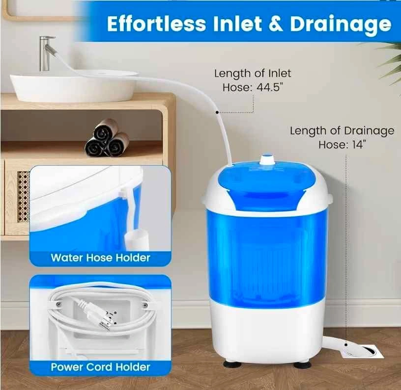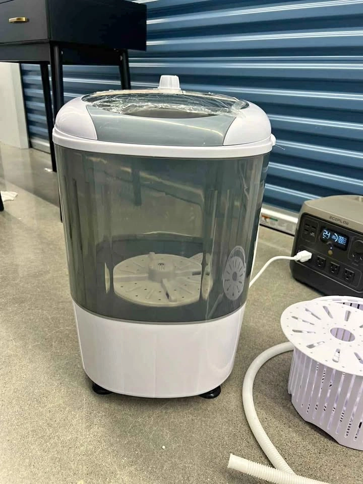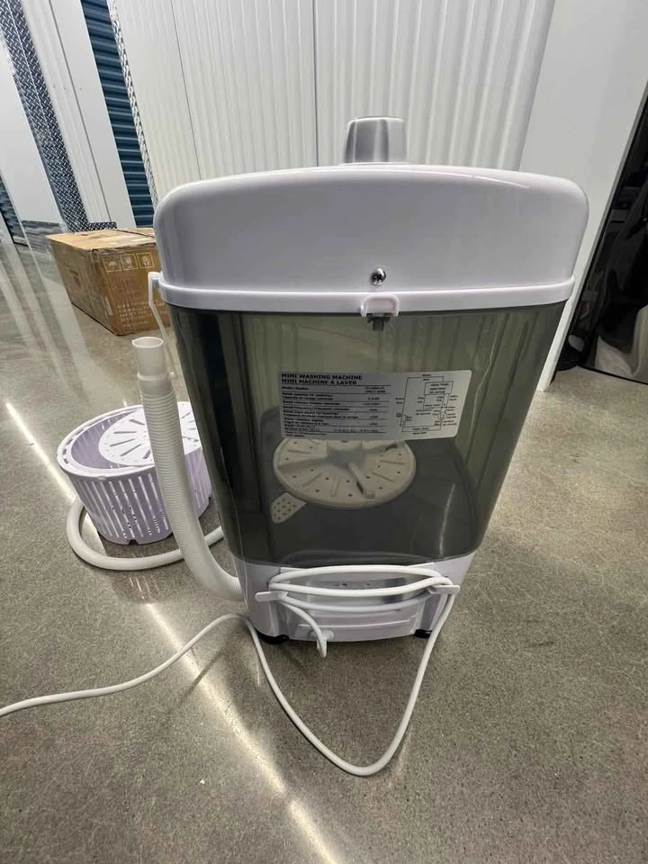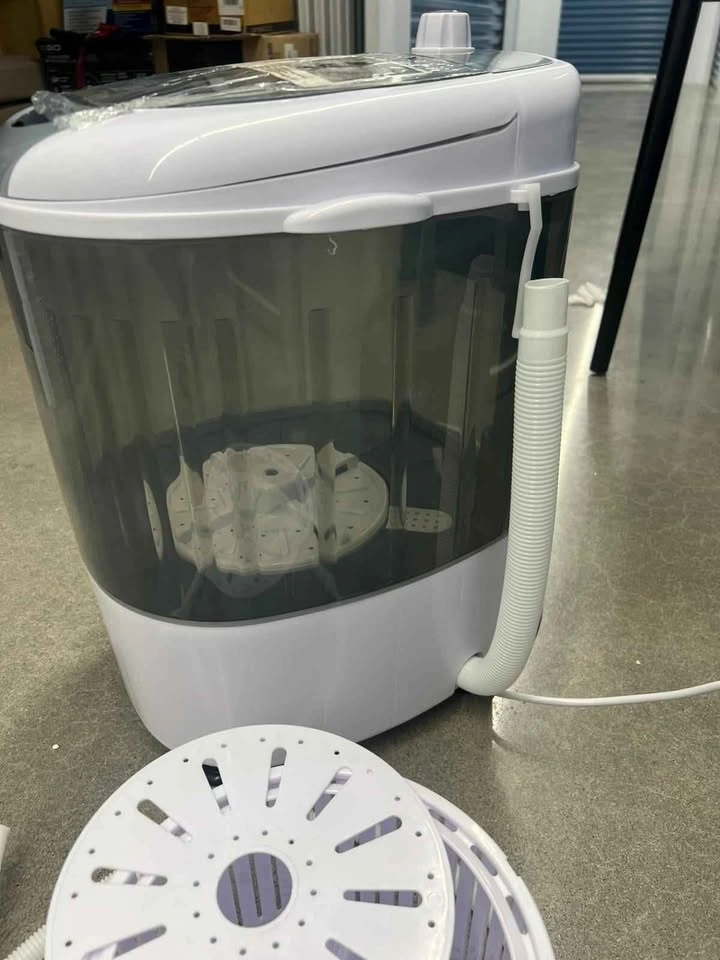 49Compact and efficient 2-in-1 washer and spinner, perfect for apartments, dorms, RVs, and travel. Features 5.5 lb washing capacity, 1.1 lb spin capacity, drain hose, and see-through lid. Energy-saving design with 10-min wash and 5-min spin timers. Brand new, only opened for testing, pulled from a liquidation pallet. Pickup only.