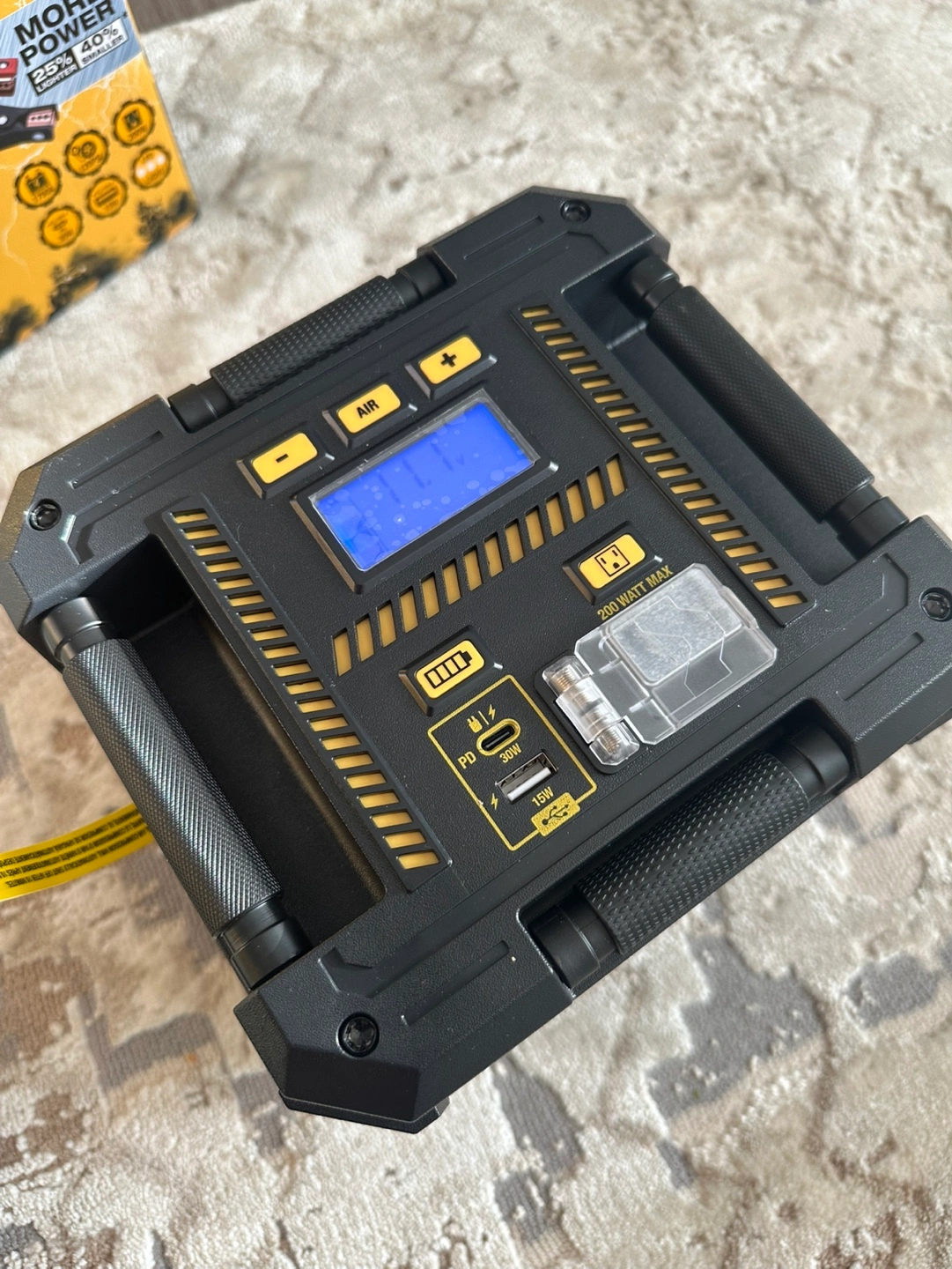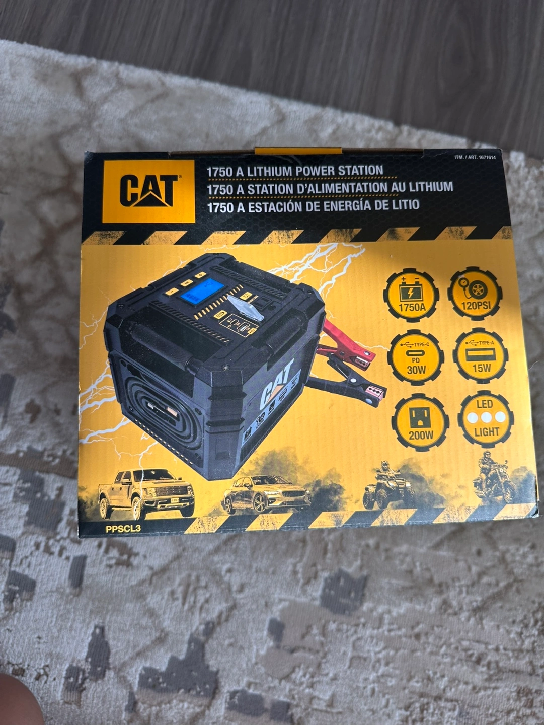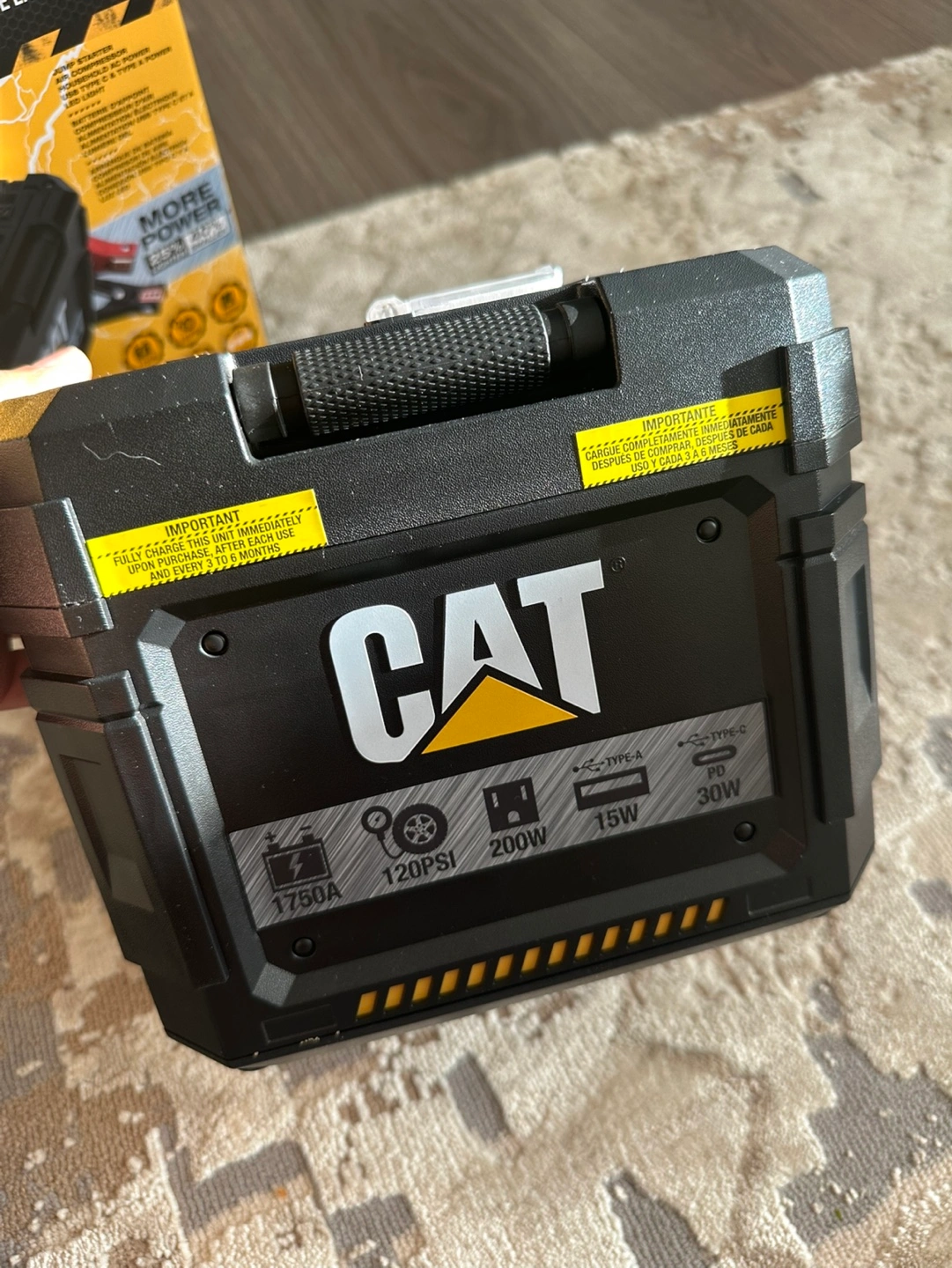 15We received it as a gift but we have one already. This is very useful for us specially when youre on the road. Not only jump starter but you can charge your phone, inflate your bike tires, or basketball, hook your small appliances and many more. The CAT PPSCL3 Lithium Power Station is a 4 in 1 solution. 1750 peak amps of starting power instantly jump-starts 12V cars and trucks up to 8 cylinders. 200 Watts of household power lets you keep small appliances, tools and more going on the road or in emergencies. While the dual USB ports keep your tablets, phones, gaming devices and more charged up. The 120PSI air compressor inflates tires or sports equipment (sports needle adapter included.). The new Auto Shut Off 10 minutes timer to avoid damage from heat, should the compressor be left on unintentionally or unattended Features: - Helps to jump-start most 12V vehicles - 120 Volt AC outlet - USB port type-C PD 30W & 1 USB port type-A 15W - Reverse Polarity Protection and spark-free technology - Easily adjust pressure to desired PSI with the (+) and (-) control buttons up to 120 PSI. - Heavy-duty brass tipped Sure Fit® nozzle Includes: USBa/USBc and USBc to USBc charging cables Jump cables with Smart Controller Storage pouch