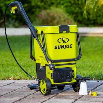 76IONMAX 24-Volt system - includes 2 x 4.0 Ah lithium-ion batteries for up to 20-minutes of rechargeable runtime plus dual-port charger. Powerful 48-Volt/600-Watt motor generates up to 800 PSI and .77 GPM. Featuring exclusive eco sharp technology for no fade power and maximum performance. Innovative, top-loading detachable 6.6 gal bucket plus base that connects directly to the tap for continuous water flow. Easy-glide wheels for maximum maneuverability. Exclusive pressure select technology: 650 PSI to 800 PSI