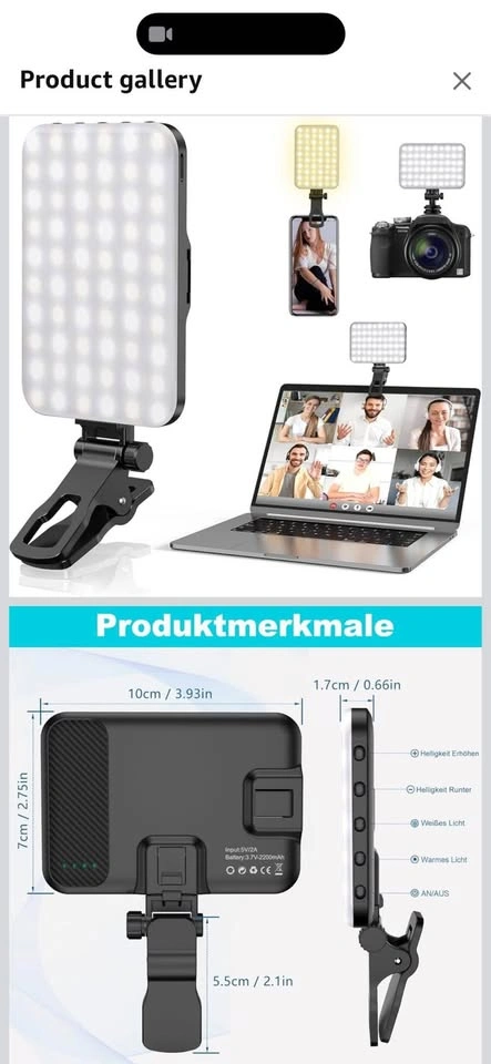 38Item is available as long as the listing is up. Open Box - New Pick up location is Jane and Wilson Selfie Light, 60 LED 2200mAh Rechargeable Clip Fill Video Light (Black)