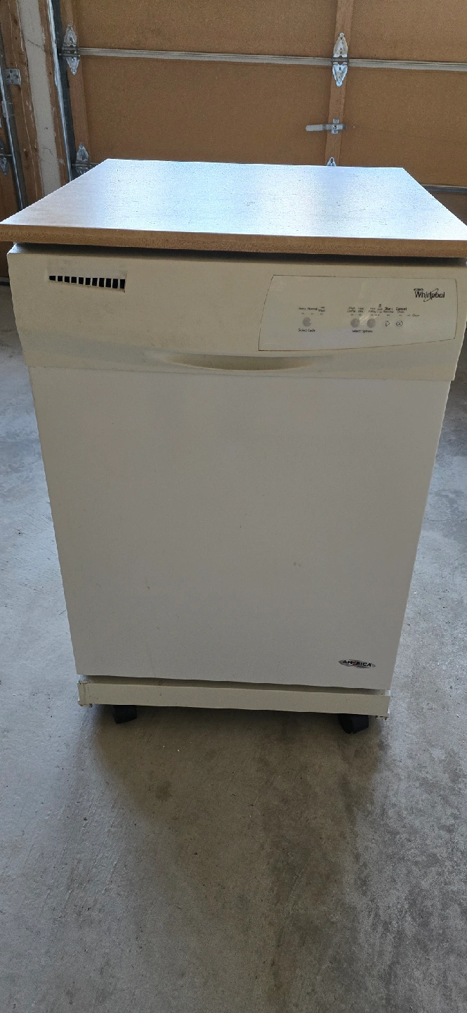 Selling a Portable Whirlpool dishwasher, model WDP350PAAW6. It's white and in used condition. Would be a great addition to any home! Comes with the faucet adapter, new model.sells for $900 - $1,000. Will need a minivan or larger for pickup. Comes with heated dry option, high temp wash option, delay wash, heavy, normal and 1 hour wash.