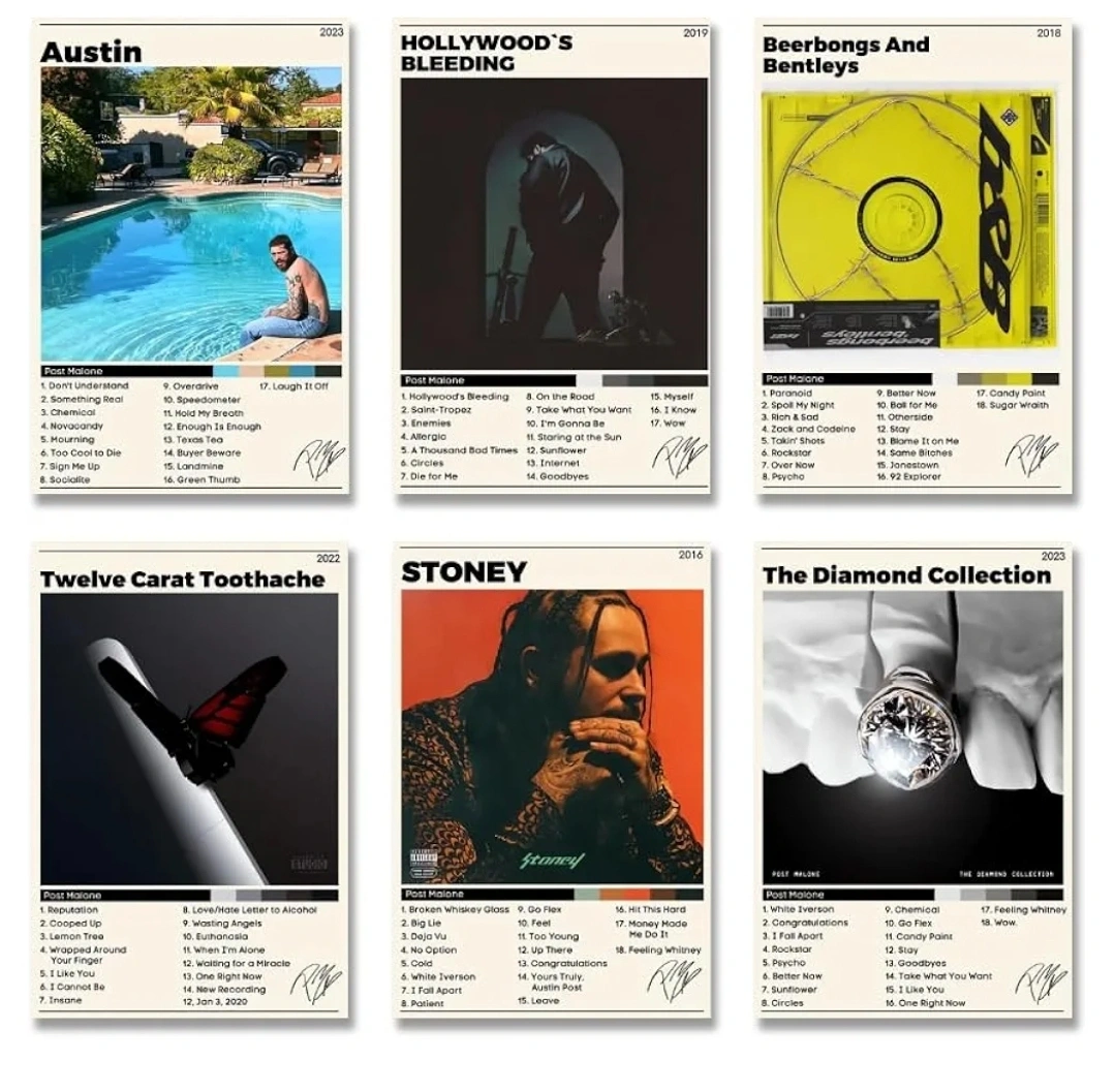 Generic Post Malone Poster Set of 6 Album Cover Posters Music Posters for Room Aesthetic Canvas Wall Art for Teens and Girls Room Decor 8x12inchUnframed Smoke/pet free home Pick up Hespeler Cambridge