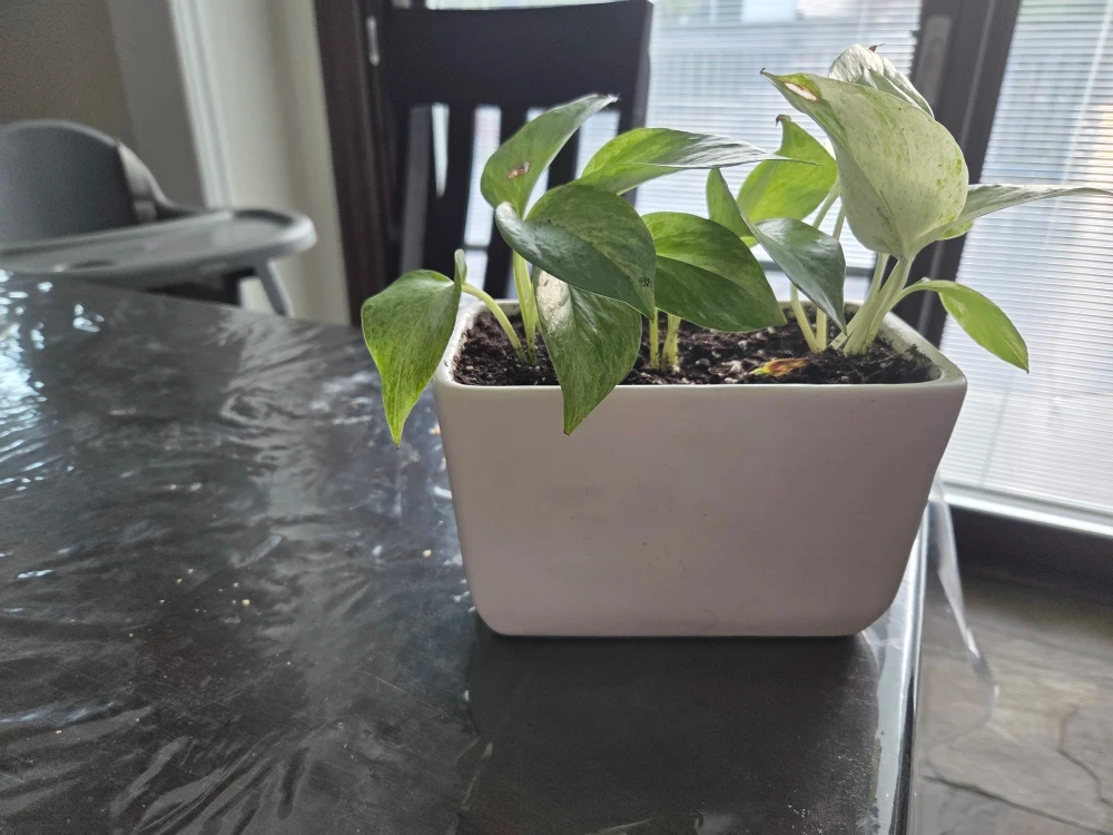 12A lovely pothos plant in a simple white pot, perfect for adding a touch of greenery to your home! It's a healthy plant and ready to brighten up any space