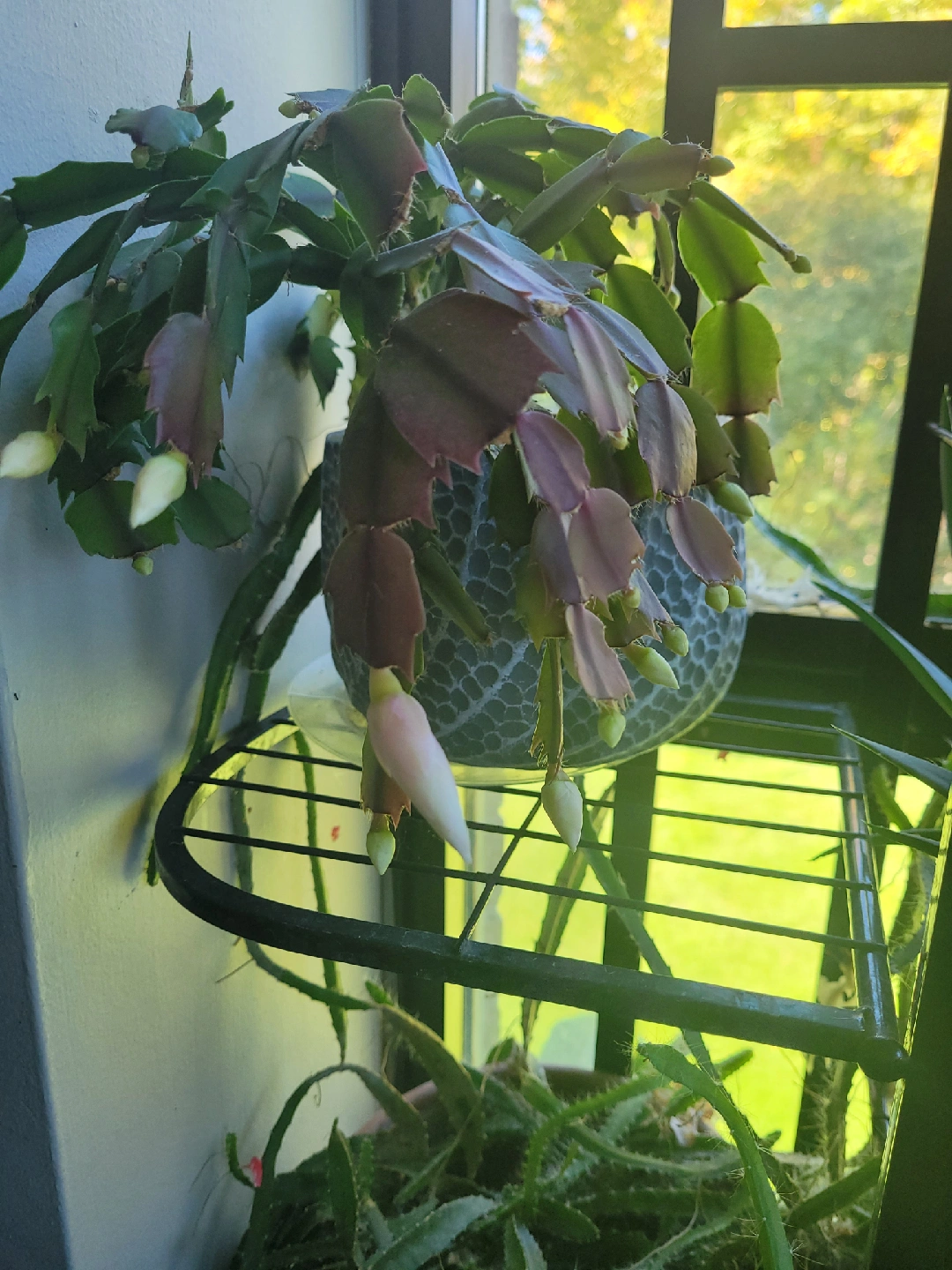 173Selling a healthy and vibrant Christmas cactus in a decorative pot. It's currently budding and ready to bloom with beautiful flowers. Perfect for adding a touch of nature to your home!