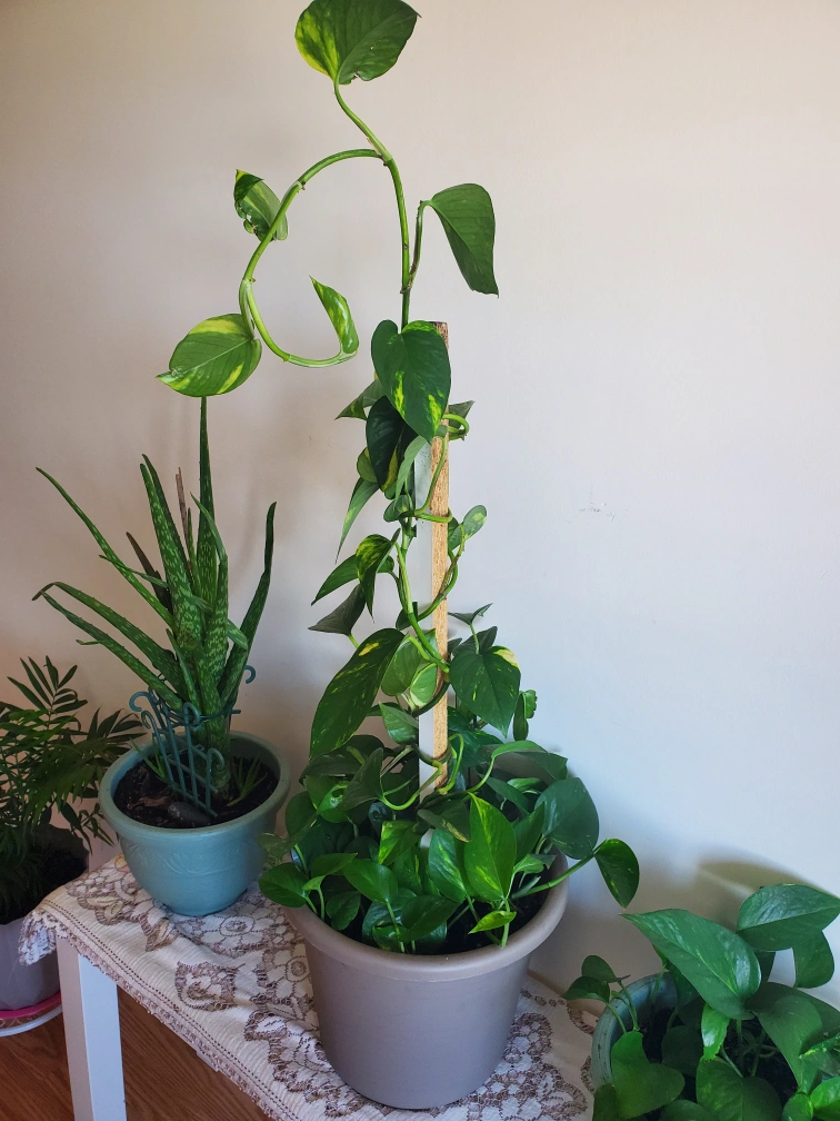 I'm selling a lovely golden pothos plant! It's potted and ready to brighten up your space with its vibrant green and yellow leaves