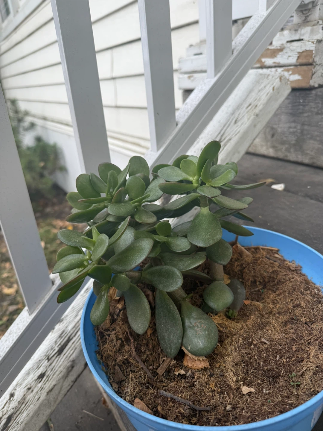 15A lovely jade plant in a blue pot, ready to bring some greenery to your space! It's a healthy little plant, perfect for adding a touch of nature to your home or office In a one gallon pot.