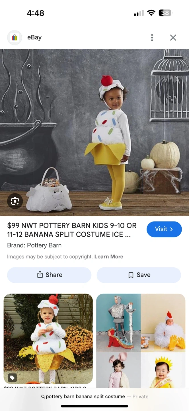 15Here's a gently used Pottery Barn Kids cupcake costume, perfect for dress-up or Halloween! It's a size 2T-3T and in great condition. The costume features a cute cupcake design with a cherry on top
