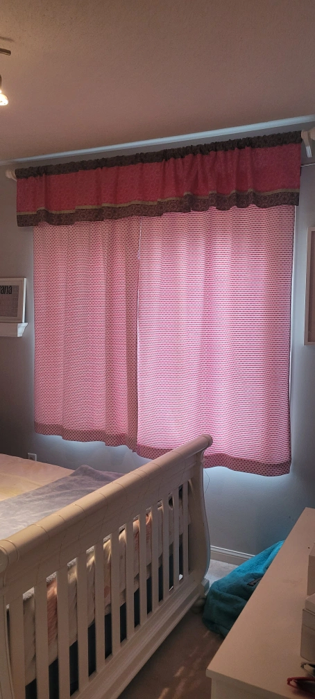 Selling a set of pink polka-dot window curtains from Pottery Barn and valance. They're in great shape and would add a nice touch to any room.