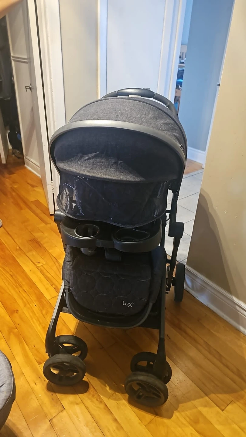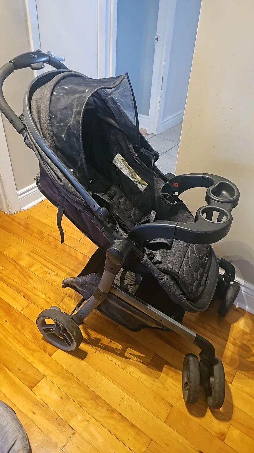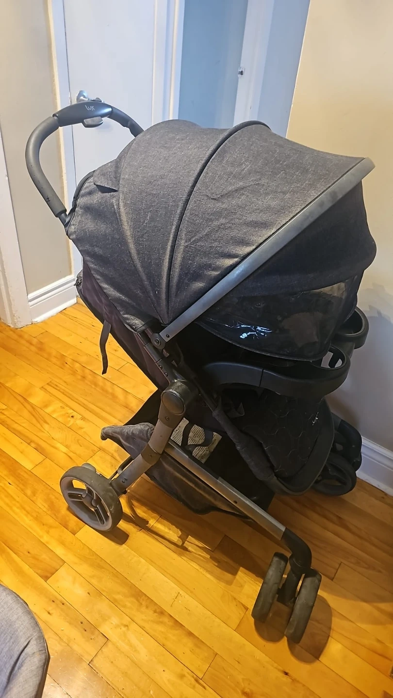 20Je vends une poussette Evenflo LUX. Elle est en bonne condition et parfaite pour les promenades avec votre enfant! Elle est de couleur grise et noire. Elle a un siège d'auto Evenflo inclus.