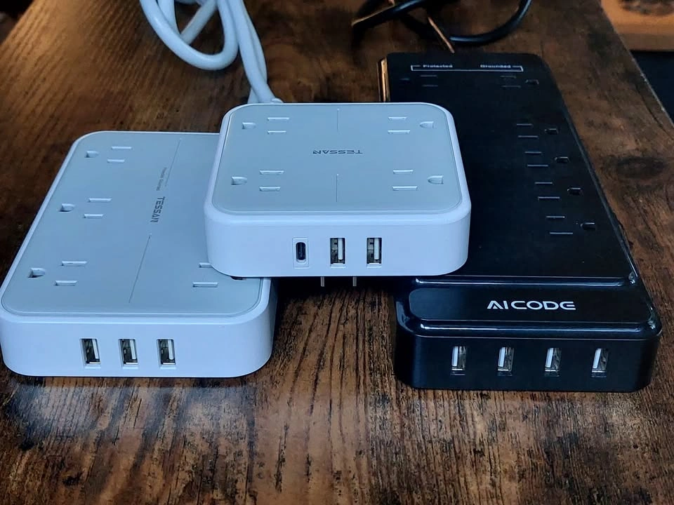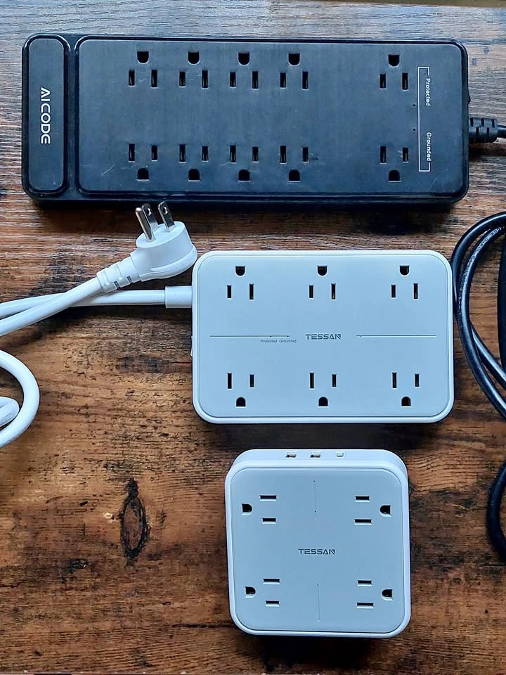 140Items sold individually, see prices below: $10 TESSAN 4 Multi Plug Outlet Splitter with 1 USB C and 2 USB A Charing Ports TS-WM102-C Plugs directly into wall (no extension cord) 4 grounded AC sockets Rated: 13A AC (1625W) USB-A: 2 ports, 5V 2.4A per port USB-C: 1 port, 5V 3.0A per port USB all: max 3A total (15W) Note: Stabilization peg is cracked, but still does its job. See photos. $15 TESSAN Power Strip, 6 outlets and 3 USB charging ports TS-106 90° AC Wall Plug and 6ft extension cord 6 grounded AC sockets Rated: 13A AC (1625W) USB: 3 ports, 5V 2.4A per port, max 3A total Surge Protection: 1080J $15 AICODE Power Strip, 10 outlets and 4 USB charging ports ZN-10A4U 90° AC Wall Plug and 6ft extension cord 10 grounded AC sockets Rated: 15A AC (1875W) USB: 4 ports, 5V 2.4A per port, max 3.6A total Surge Protection: 2100J Picking up near Fraser St and 20th Ave.