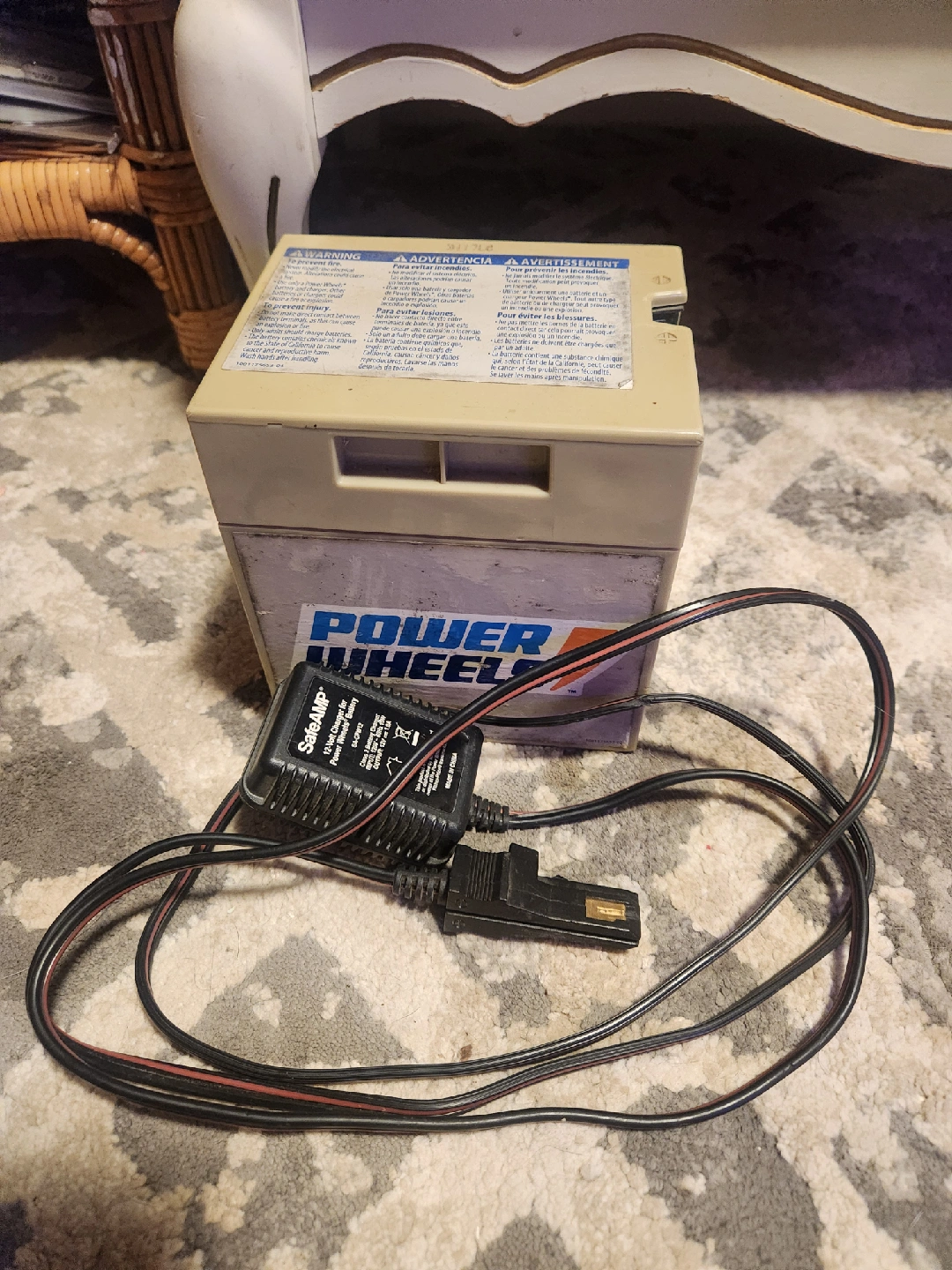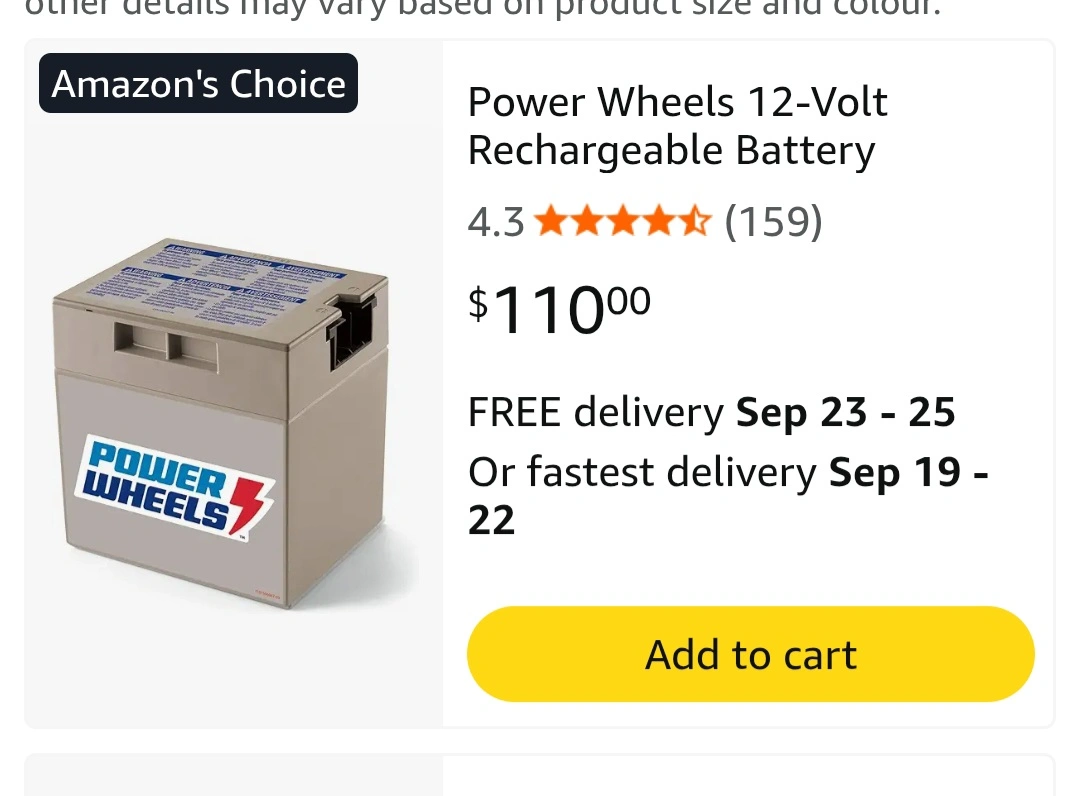 15Selling a Power Wheels 12-Volt rechargeable battery. It comes with the charger as well! Originally bought for $110. front is faded but works perfect.